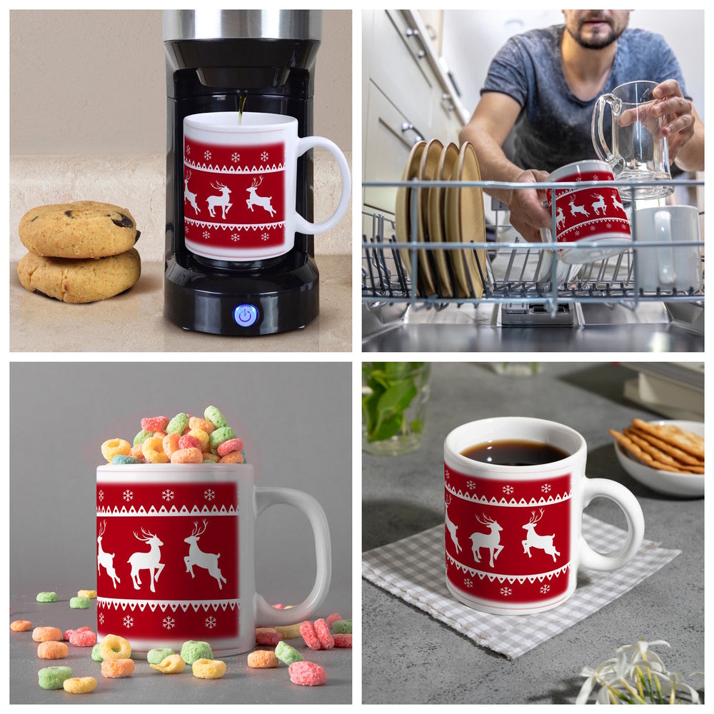 • Damit du deinen liebsten Tee, Kaffee oder Glühwein zur Weihnachtszeit mit Stil trinken kannst, gibt es nun diesen tollen Kaffeebecher mit den dekorativen Rentieren!