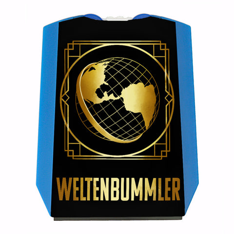 Weltenbummler Parkscheibe mit goldenem Globus und Reisemotiv