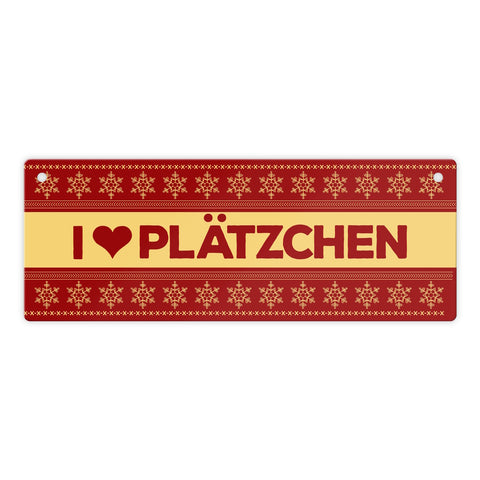 I love Plätzchen Metallschild mit Weihnachtsmuster Motiv - Weihnachten Herz Schnee Sterne Punkte Muster