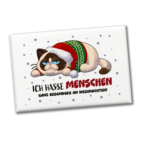 Ich hasse Menschen – besonders an Weihnachten Souvenir Magnet mit grimmiger Katze