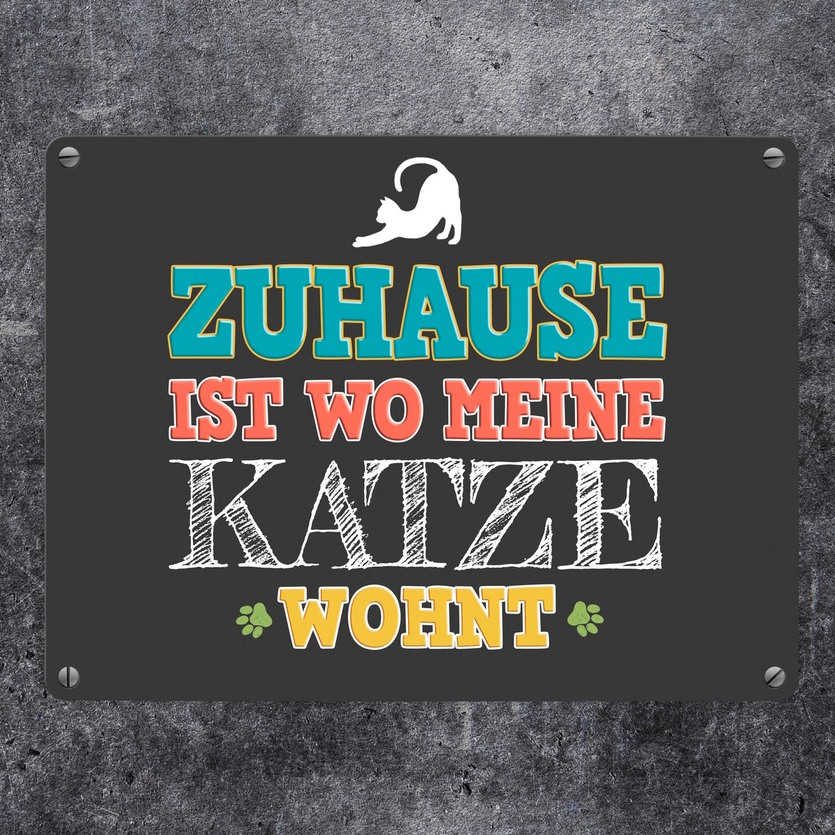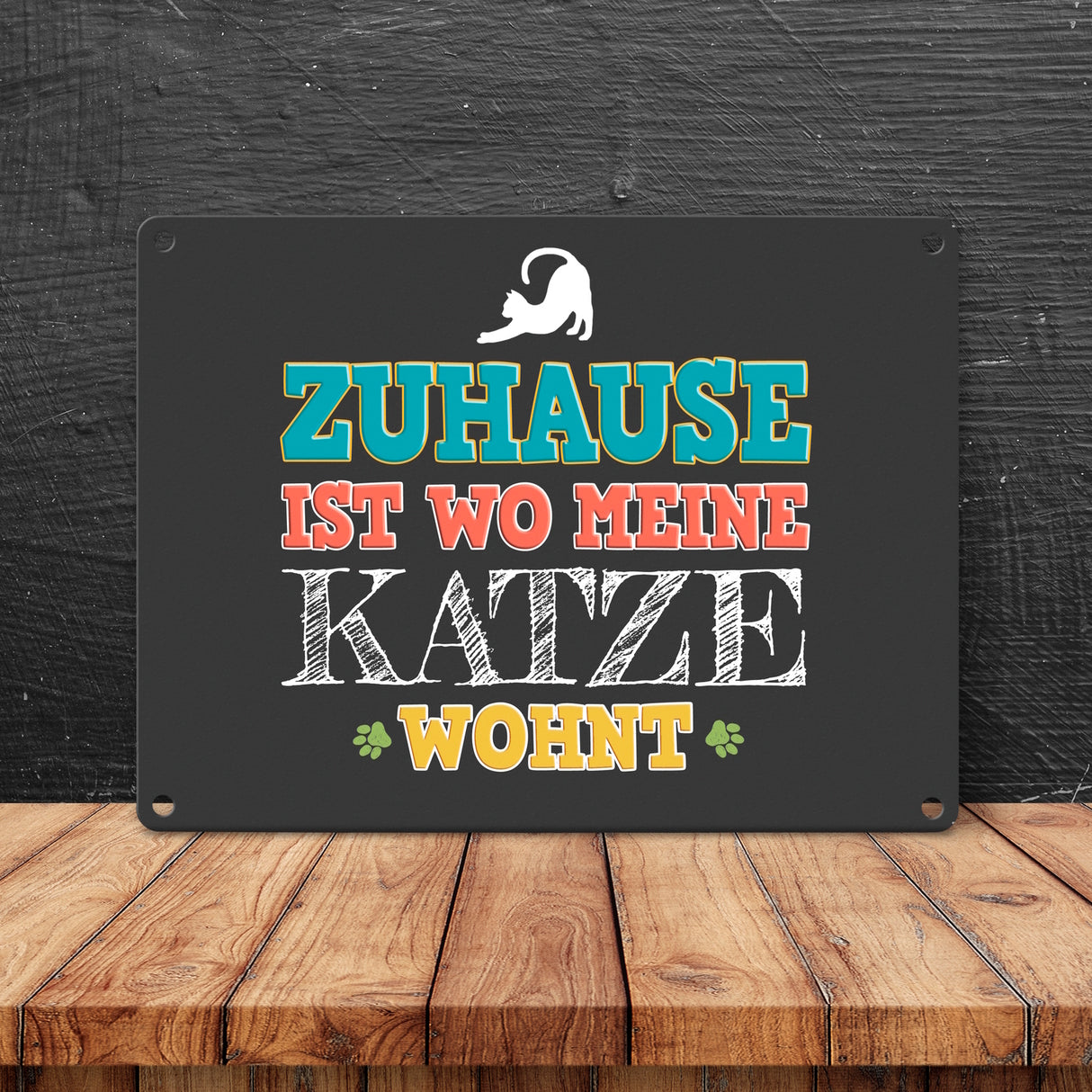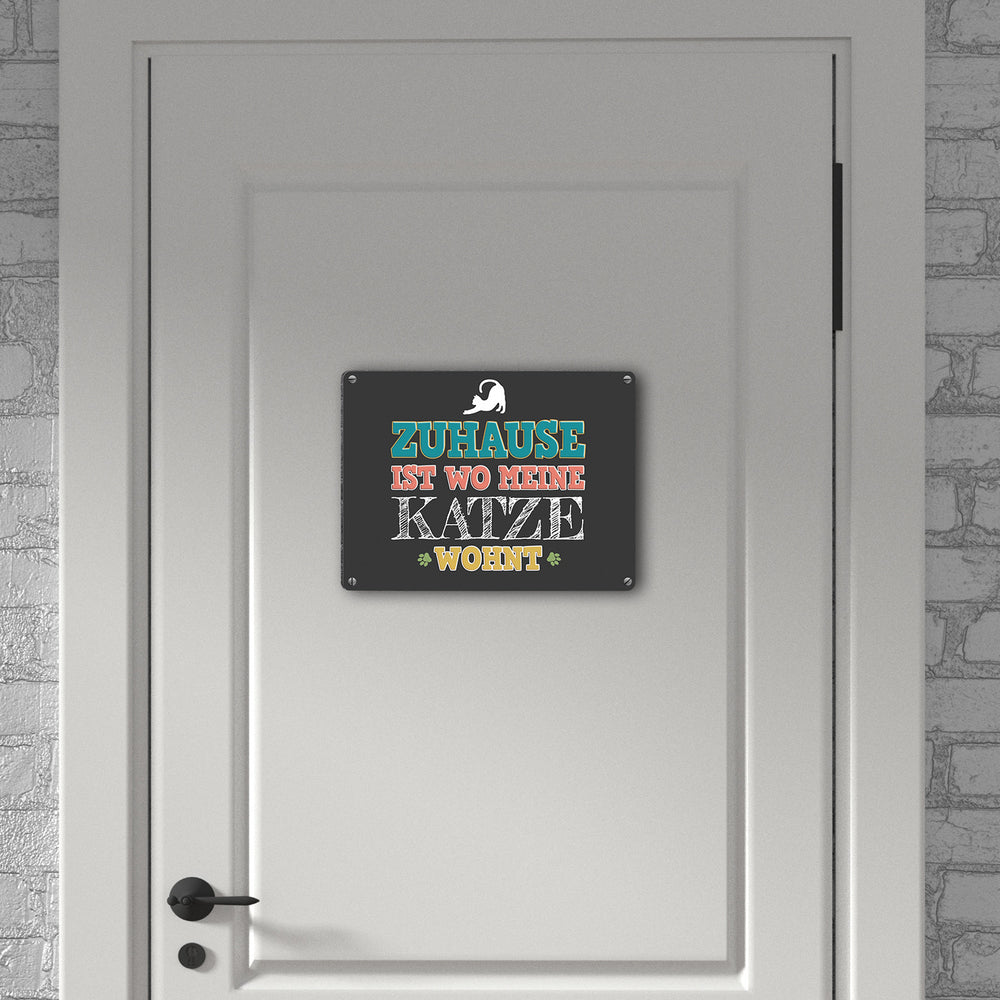 - 1x Zuhause ist wo meine Katze wohnt Metallschild in der gewählten Größe