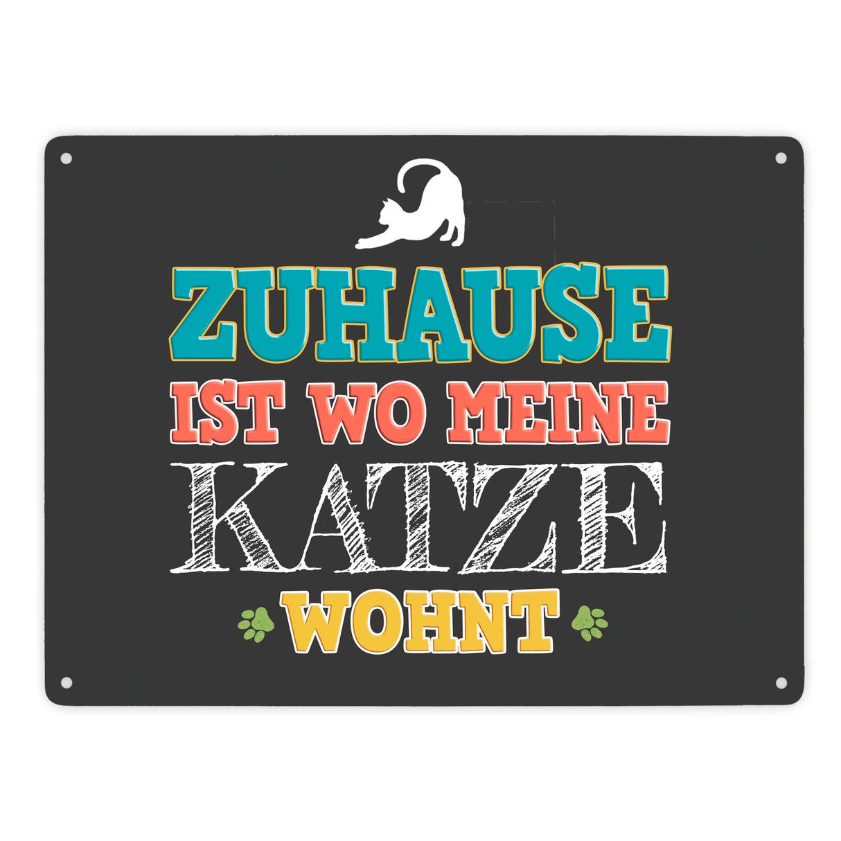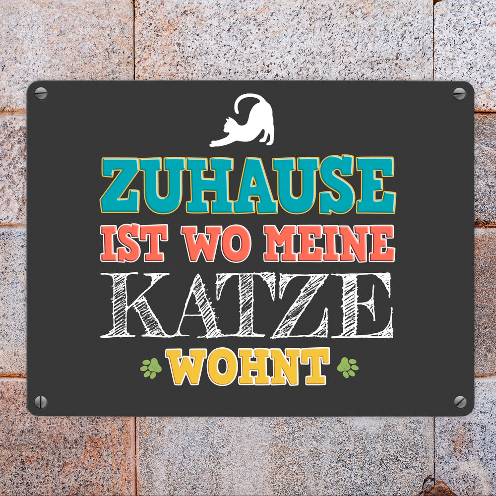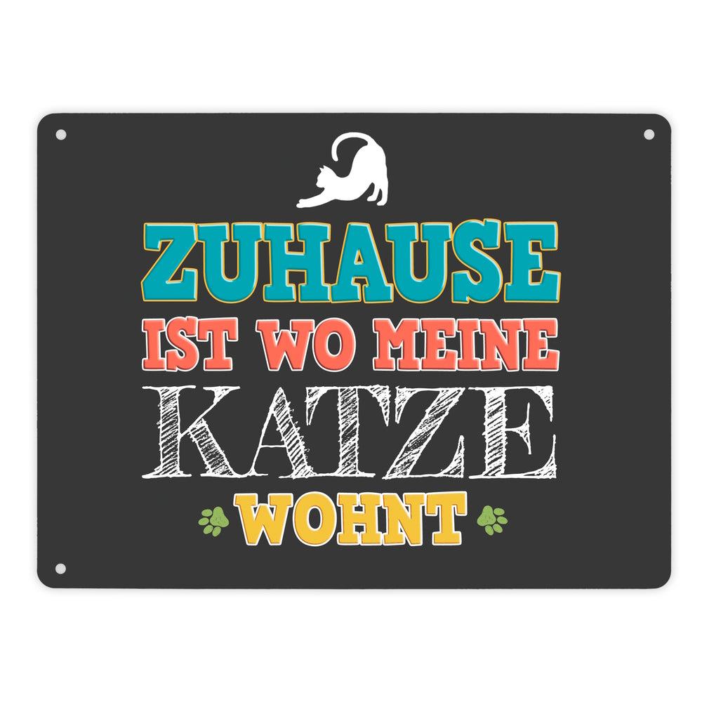 - 1x Zuhause ist wo meine Katze wohnt Metallschild in der gewählten Größe