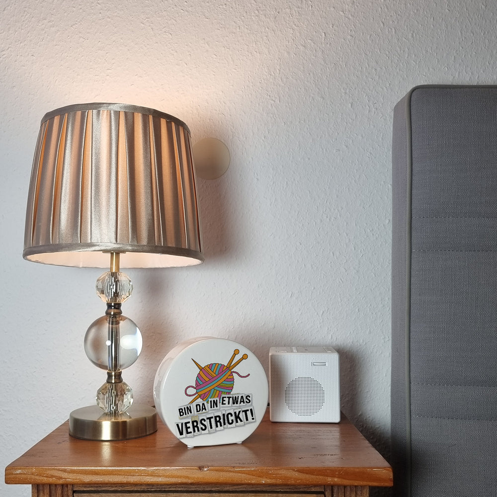 Entdecken Sie die kreative und gleichzeitig praktische Welt der „Bin da in etwas verstrickt“-Spardose. Diese einzigartige Spardose ist ein Muss für alle leidenschaftlichen Strickliebhaber, die nicht nur ihr Handwerk, sondern auch ihren Sinn für Humor zur Schau stellen möchten. Verziert mit einem bunten Wollknäuel-Design und gekreuzten Stricknadeln, bringt diese Spardose Farbe in jedes Zuhause und sorgt garantiert für Gesprächsstoff.Der humorvolle Schriftzug in skurrilen Zeitungsbuchstaben erinnert an ein lustiges Drohbriefchen und verleiht der Spardose einen eigenwilligen, charmanten Charakter. Wählen Sie aus drei attraktiven Varianten: Schlicht und ergreifend als Holzspardose, elegant als ovale Keramikversion oder exklusiv als Holzrahmen mit Sichtfenster – ideal für kreative Geschenkideen.Hergestellt in liebevoller Handarbeit in unserer deutschen Spardosen-Manufaktur, kombiniert dieses Accessoire Nützlichkeit mit einem Schuss künstlerischem Ausdruck. Sein Zweck geht über das reine Sparen hinaus: Es wird Ihr ganz persönliches Statement für Kreativität und Individualität. Verschenken Sie es als besonderes Give-away oder behalten Sie es selbst, um stilvoll für Ihre nächste Wollinspiration zu sparen. Egal ob für Mütter, Schwestern oder Freundinnen - mit dieser Spardose schenken Sie nicht nur Geld, sondern auch Freude und kreative Energie.