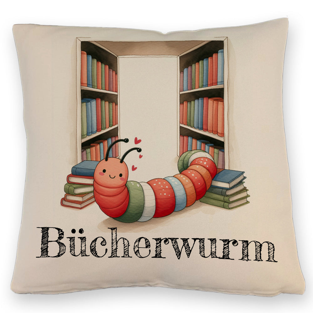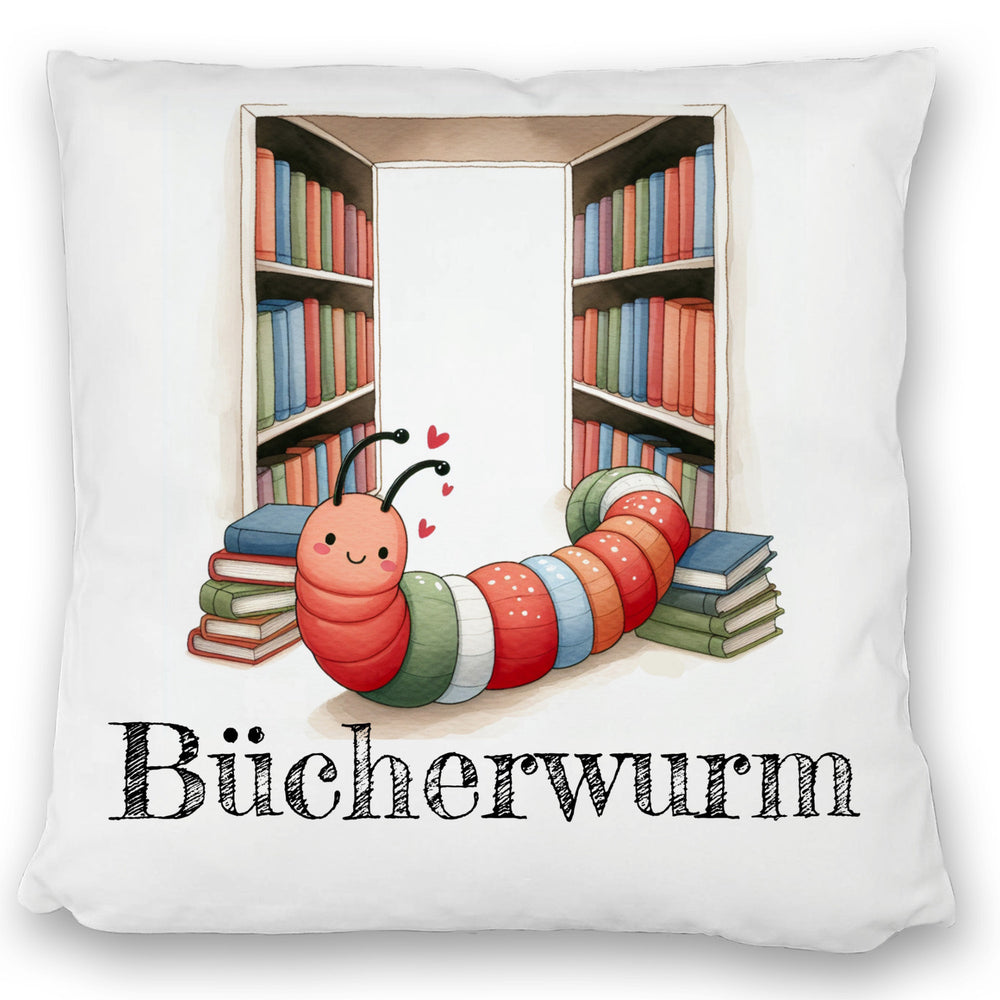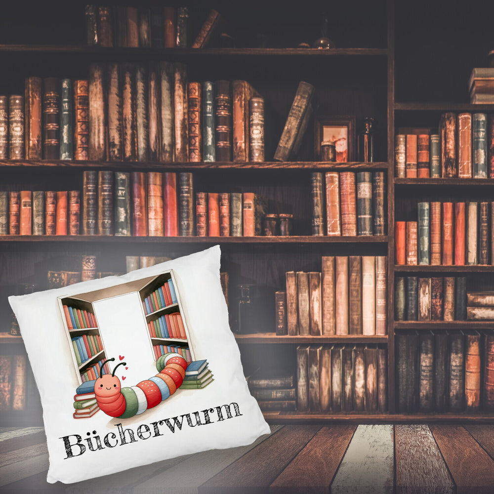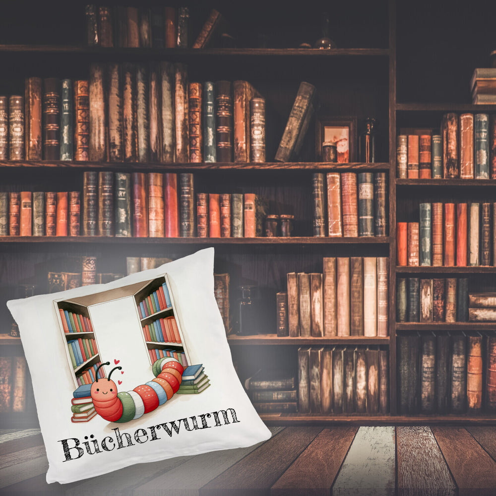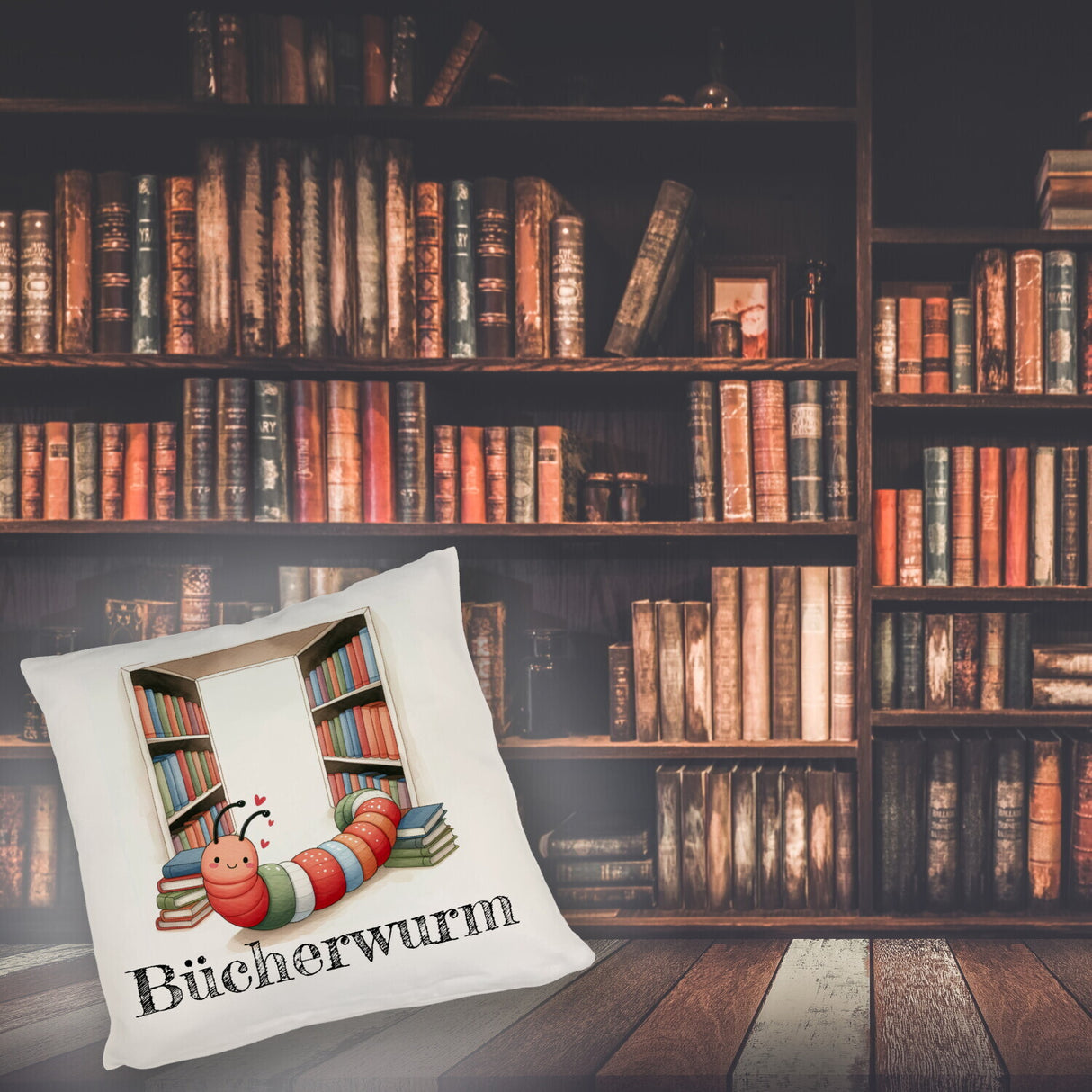 Bücherwurm Kissen mit Wurm in der Bibliothek