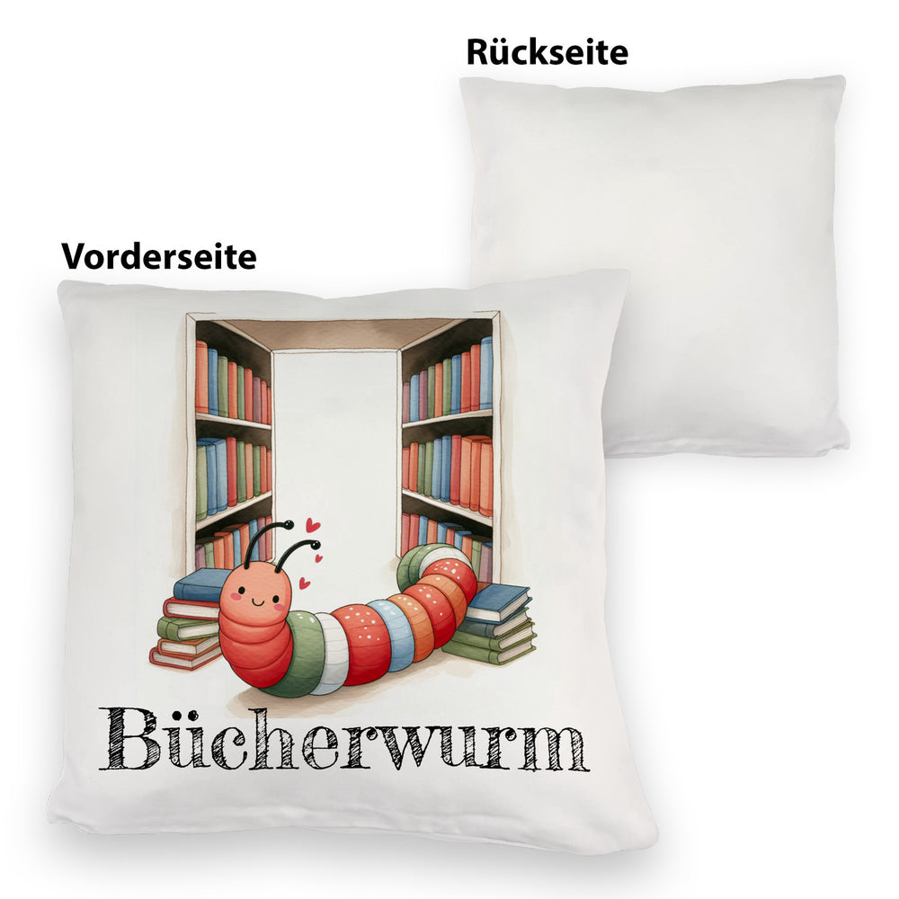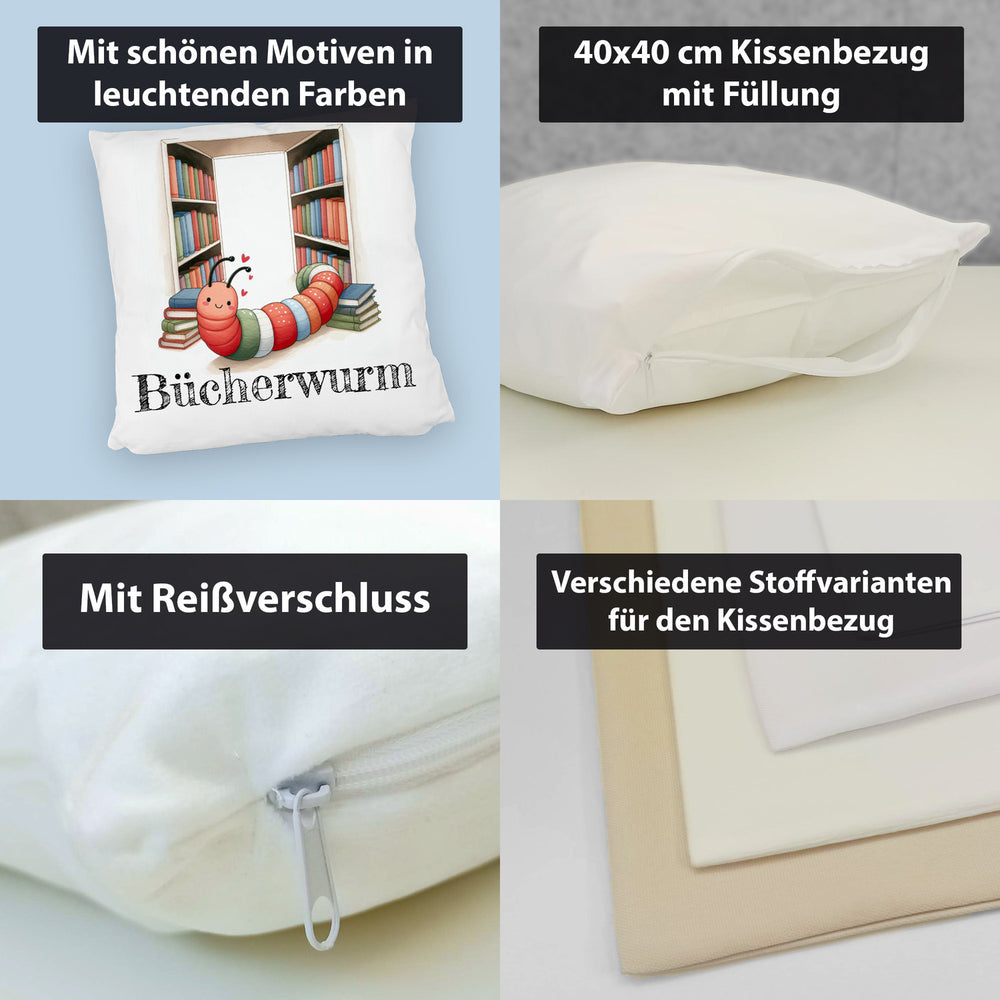 - 1x Bücherwurm Kissen mit Wurm in der Bibliothek in der gewählten Ausführung