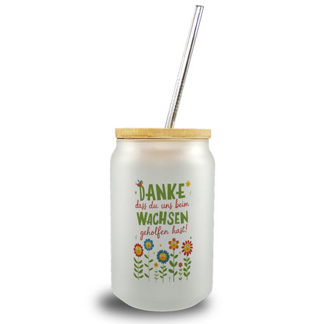 Danke dass du uns beim Wachsen geholfen hast! Trinkglas mit Bambusdeckel