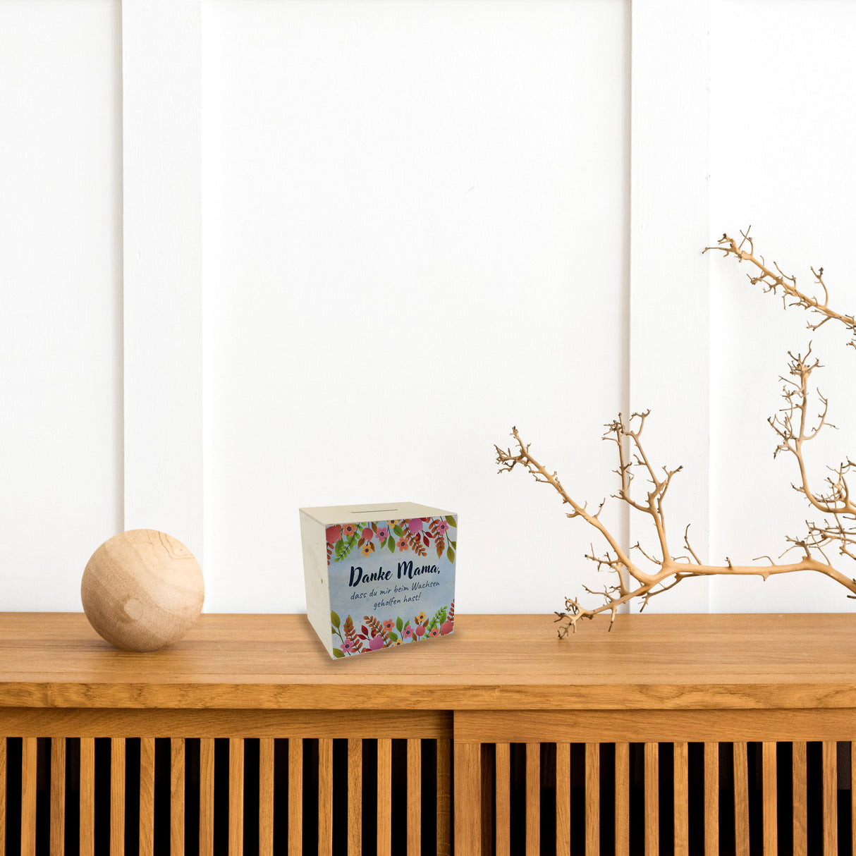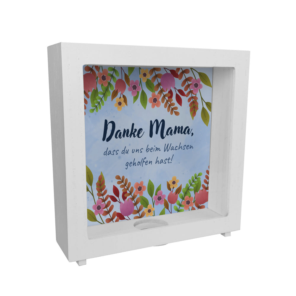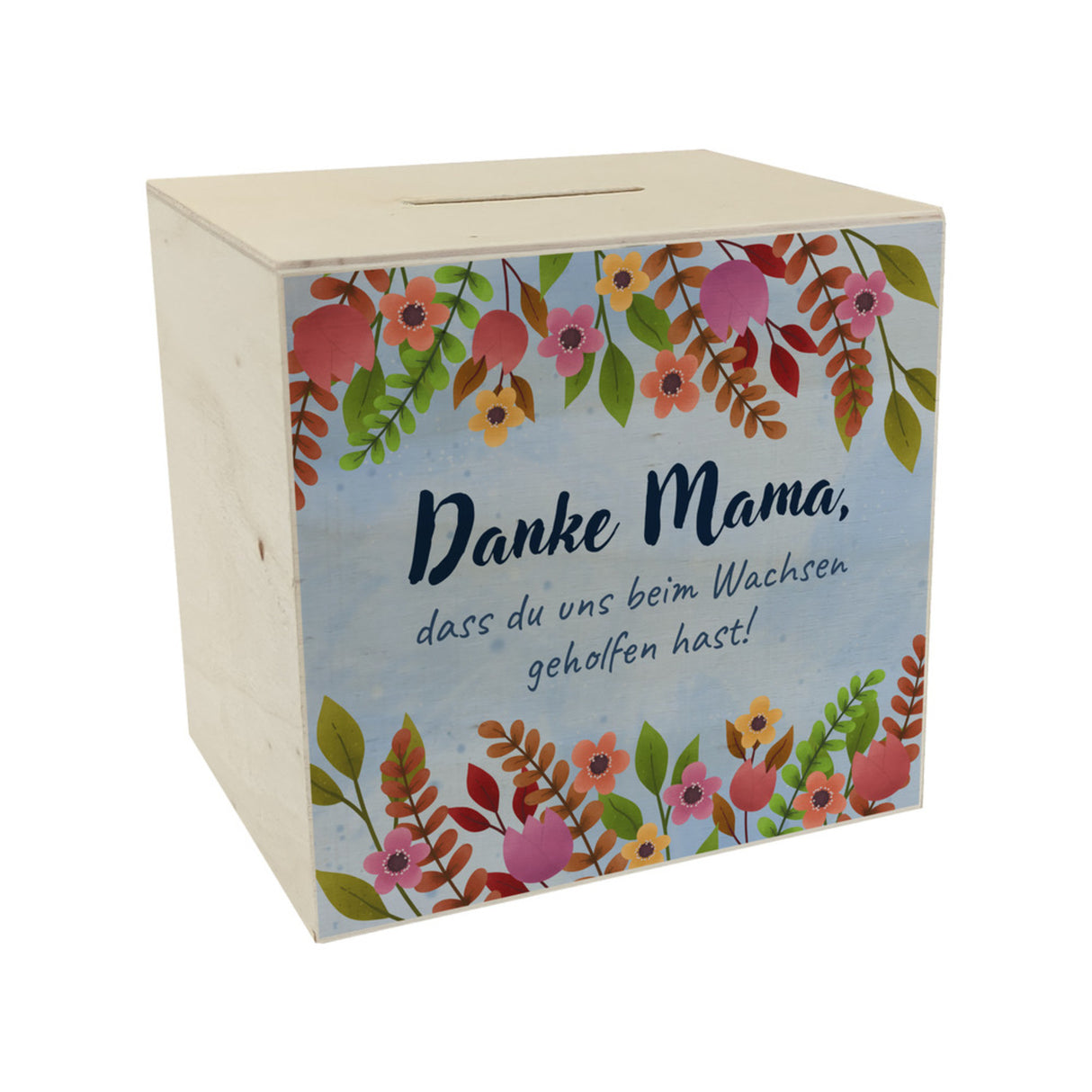 - 1x Danke Mama, dass du mir beim Wachsen geholfen hast! Spardose in der gewählten Ausführung