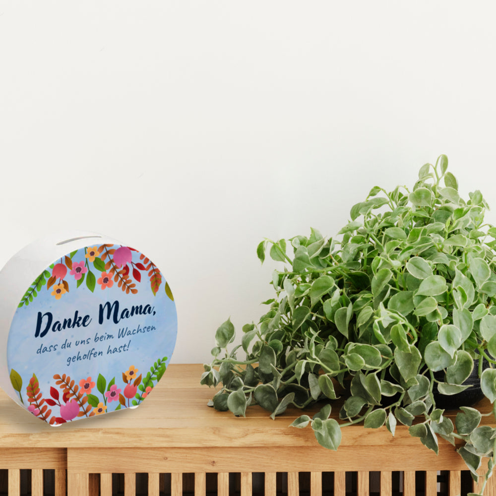 Danke Mama, dass du mir beim Wachsen geholfen hast! Spardose