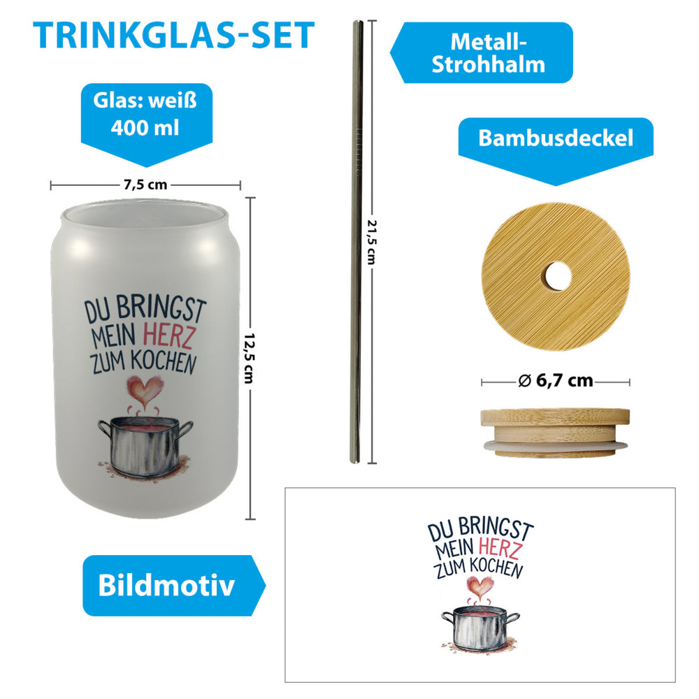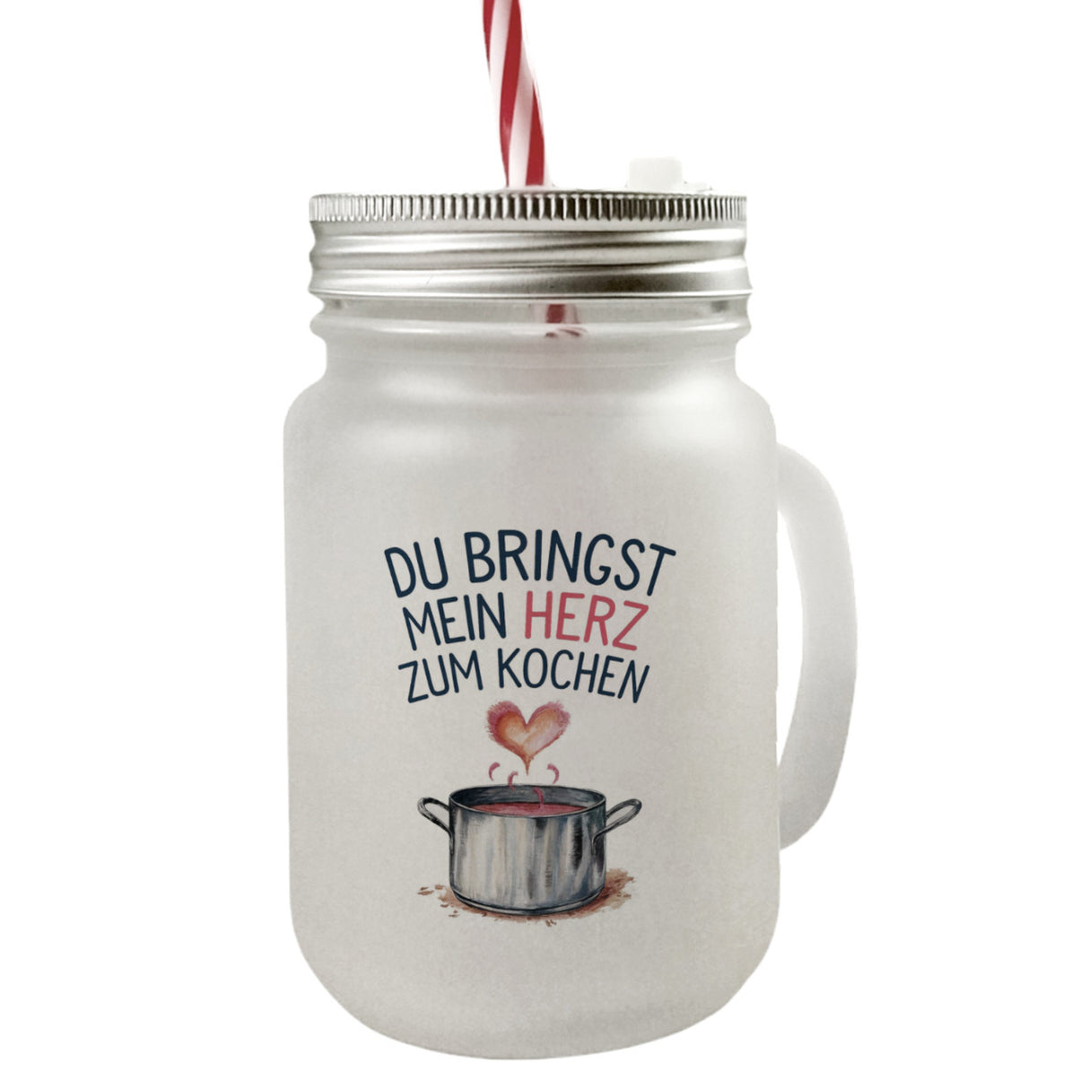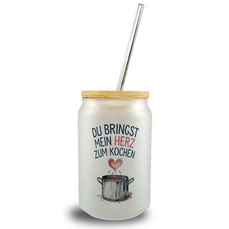 - 1x Du bringst mein Herz zum Kochen Trinkglas mit Bambusdeckel mit Bambusdeckel oder Henkel
