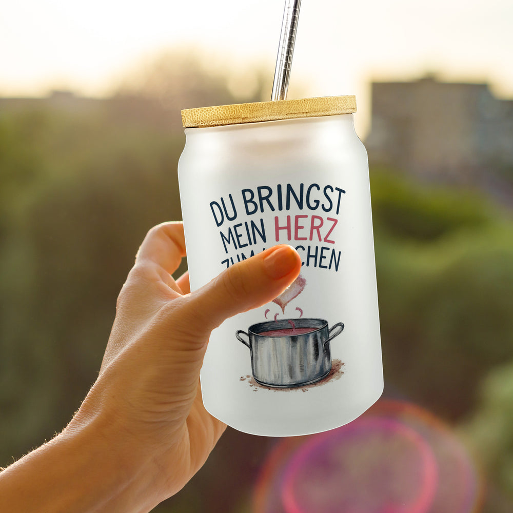 Du bringst mein Herz zum Kochen Trinkglas mit Bambusdeckel