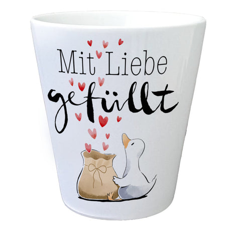 Ente Blumentopf mit Spruch Mit Liebe gefüllt