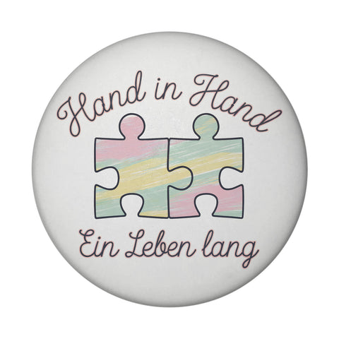 Zwei Puzzleteile - Hand in Hand Magnet rund