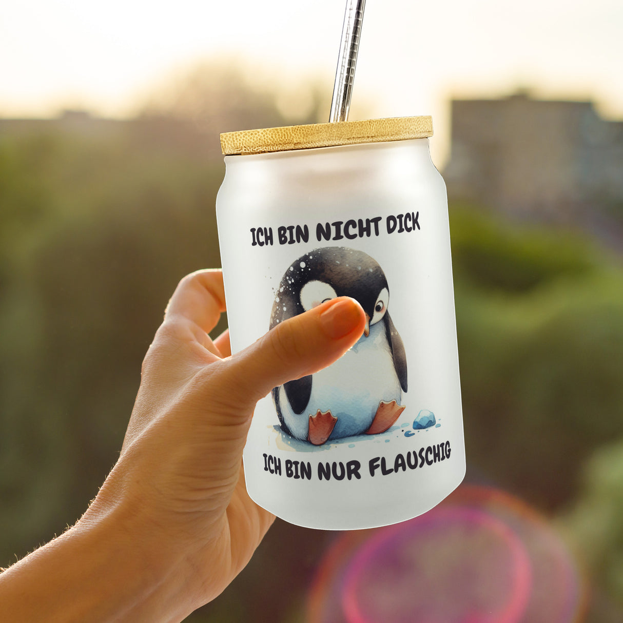 Ergreife das Trinkglas der Extraklasse und stoße an auf die kleinen Freuden des Lebens! Mit diesem komischen, dick... äh, flauschigen Pinguin an deiner Seite wird jeder Schluck zu einem Fest der Fröhlichkeit. Prost auf den Vogel, der den Spaß ins Glas bringt! Wackelt beim Watscheln, aber im Regal steht es stabil: Das Trinkglas mit dem flauschigsten aller Pinguine verziert! Nie wieder triste Trinkmomente – dieser Seevogel aus der Antarktis bringt Humor in dein Zuhause mit seinem senkenden Blick und einer Pose, die dich schmunzeln lässt. Erhältlich mit Bambusdeckel oder praktischem Henkel. Möchtest du deinen Morgenkaffee mit einer Extraportion Humor genießen oder deinen Durst mit einem Lächeln stillen? Dann ist unser flauschiger Pinguin Trinkglas genau das Richtige für dich! Dieses Glas ist nicht nur ein Getränkebehälter, sondern auch ein Stimmungsaufheller, perfekt für alle, die Tiere lieben und Humor großschreiben. Ausgestattet mit einem charmanten Pinguin, der mit senkendem Blick und einer humorvollen Pose das Herz jedes Betrachters erobert, zaubert dieses Glas schon am frühen Morgen ein Grinsen auf dein Gesicht. Aber nicht nur für den Eigenbedarf ist dieses Glas ein Hit. Es ist das ideale Geschenk für Freunde, Kollegen oder Familienmitglieder. Ich bin nicht dick, ich bin nur flauschig , prangt stolz auf dem Glas und spricht aus der Seele all jener, die wissen, dass das wahre Glück oft in einer üppigen Schicht aus Flauschigkeit liegt. Mit diesem Glas in der Hand sind Schmunzeln und Gesprächsstoff in geselliger Runde garantiert.