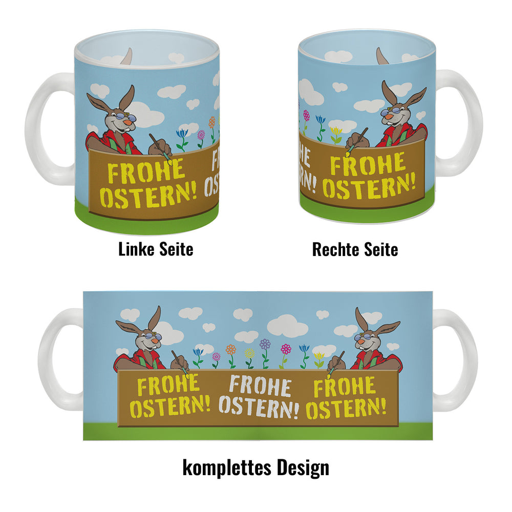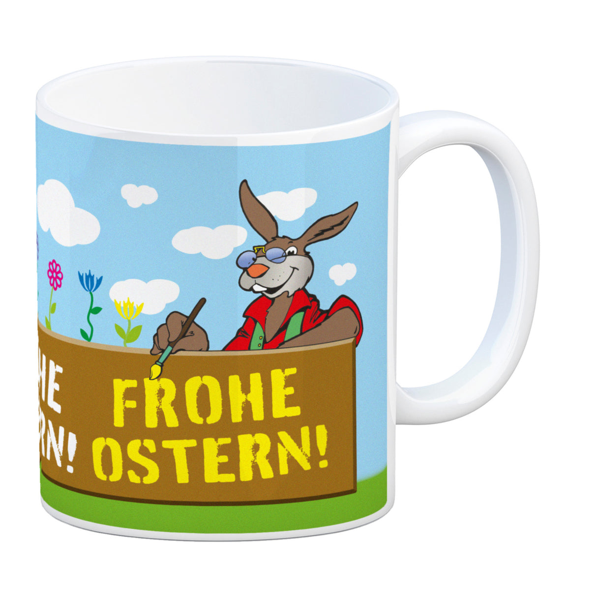 • 1x Frohe Ostern! Osterhase Kaffeebecher in der gewählten Ausführung