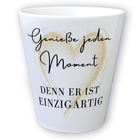 - Genieße jeden Moment, denn er ist einzigartig. - Ein wahrer Leitspruch fürs Leben! Jeder Augenblick ist kostbar und sollte in vollen Zügen genossen werden. Dieser Blumentopf erinnert uns täglich daran, dass wir das Leben lieben und jeden Moment wertschätzen sollten.