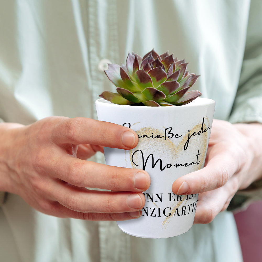 - Lieferumfang: 1x Genieße jeden Moment Blumentopf Denn er ist einzigartig