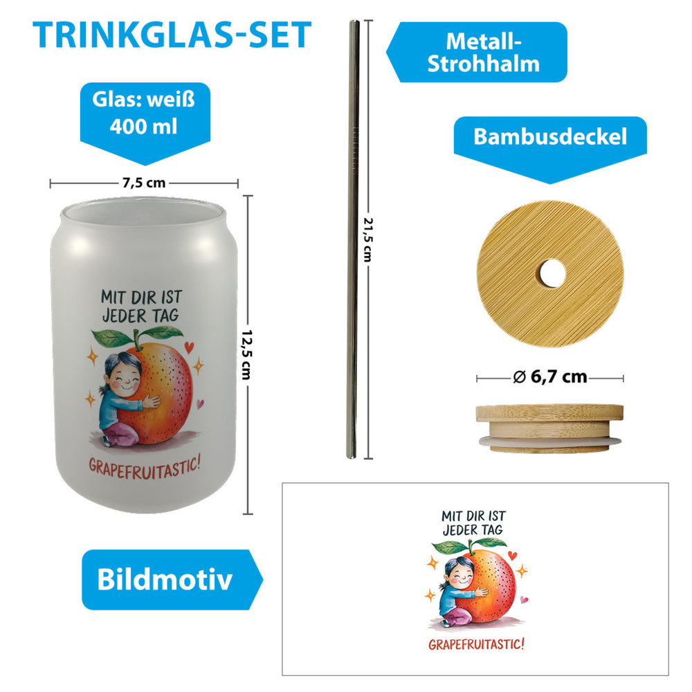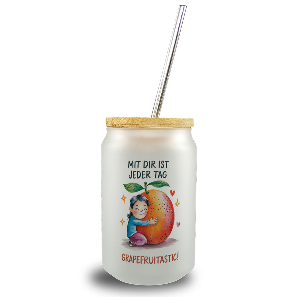 • 1x Grapefruit Umarmung Grapefruitastic Trinkglas mit Bambusdeckel mit Bambusdeckel oder Henkel