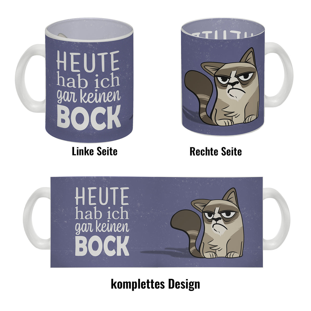 - 1x Heute hab ich gar keinen Bock Kaffeebecher mit der lustigen grummeligen Katze in der gewählten Ausführung