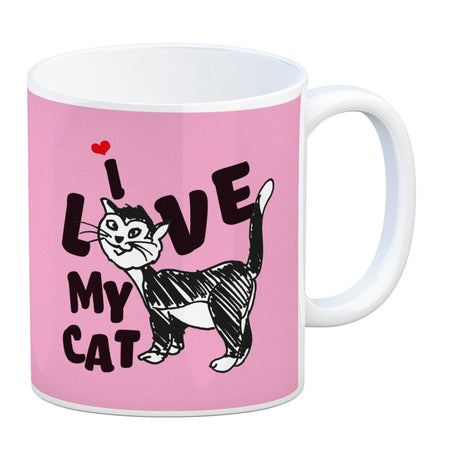 Ich liebe meine Katze Kaffeebecher mit Katzen Motiv und Rosa Hintergrund