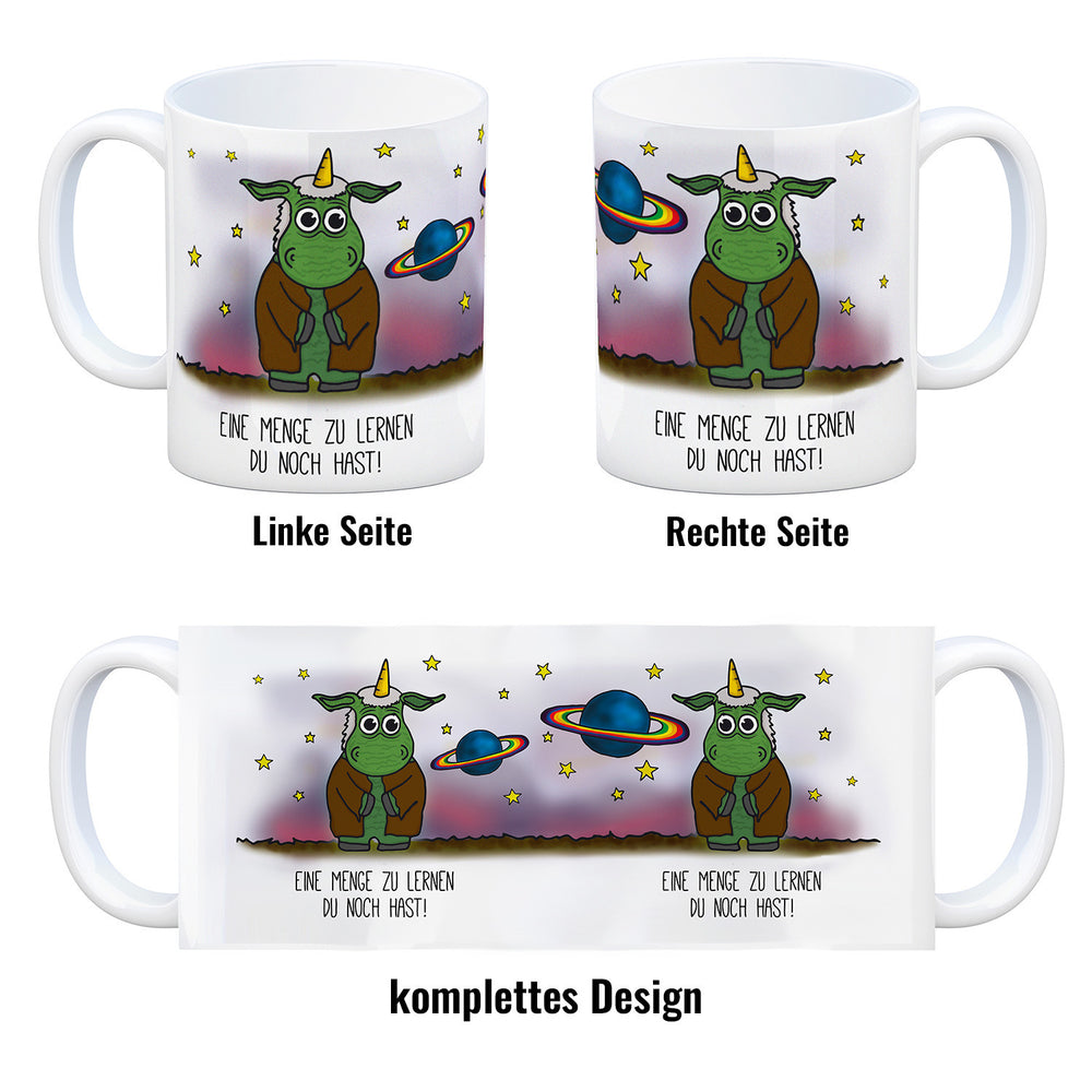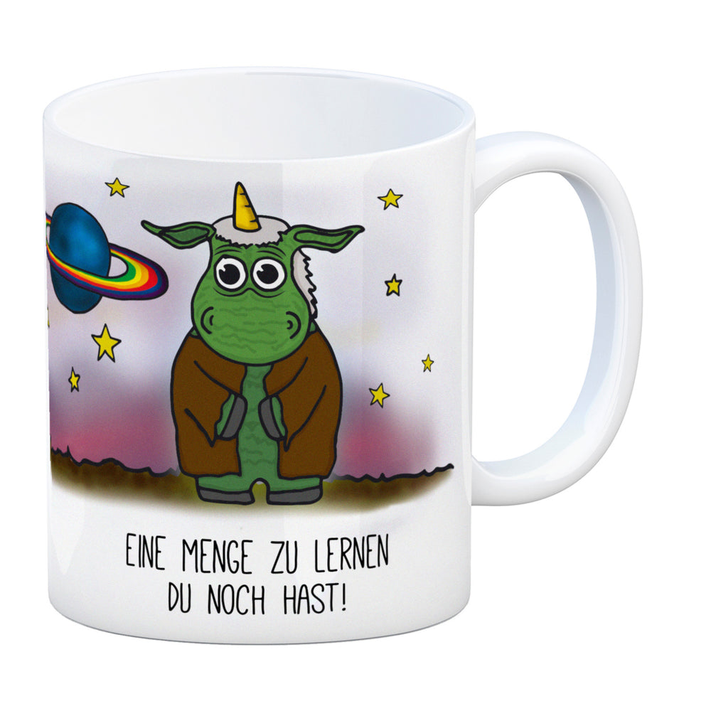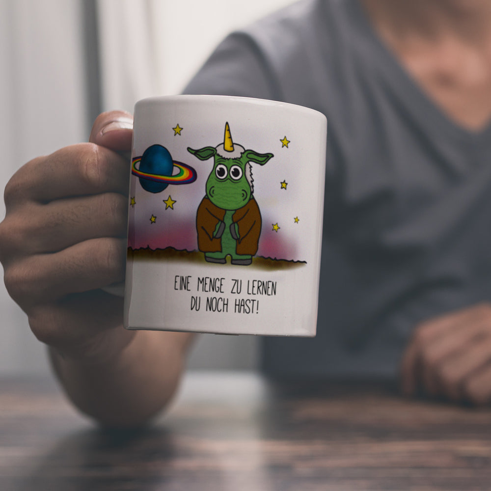 Honeycorns Kaffeebecher mit Weltraum Einhorn Motiv und Spruch: Eine Menge zu lernen ...