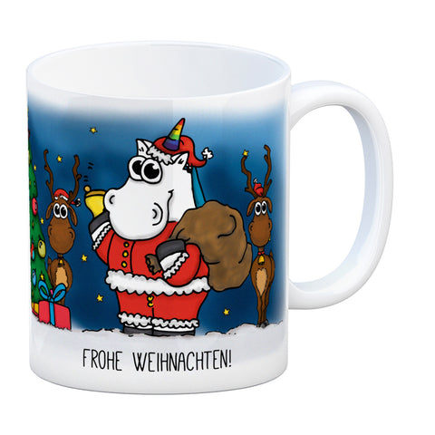 Honeycorns Kaffeebecher mit Einhorn Weihnachtsmann Motiv und Spruch: Frohe Weihnachten