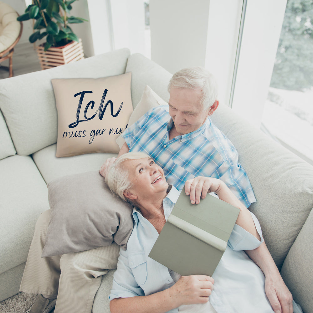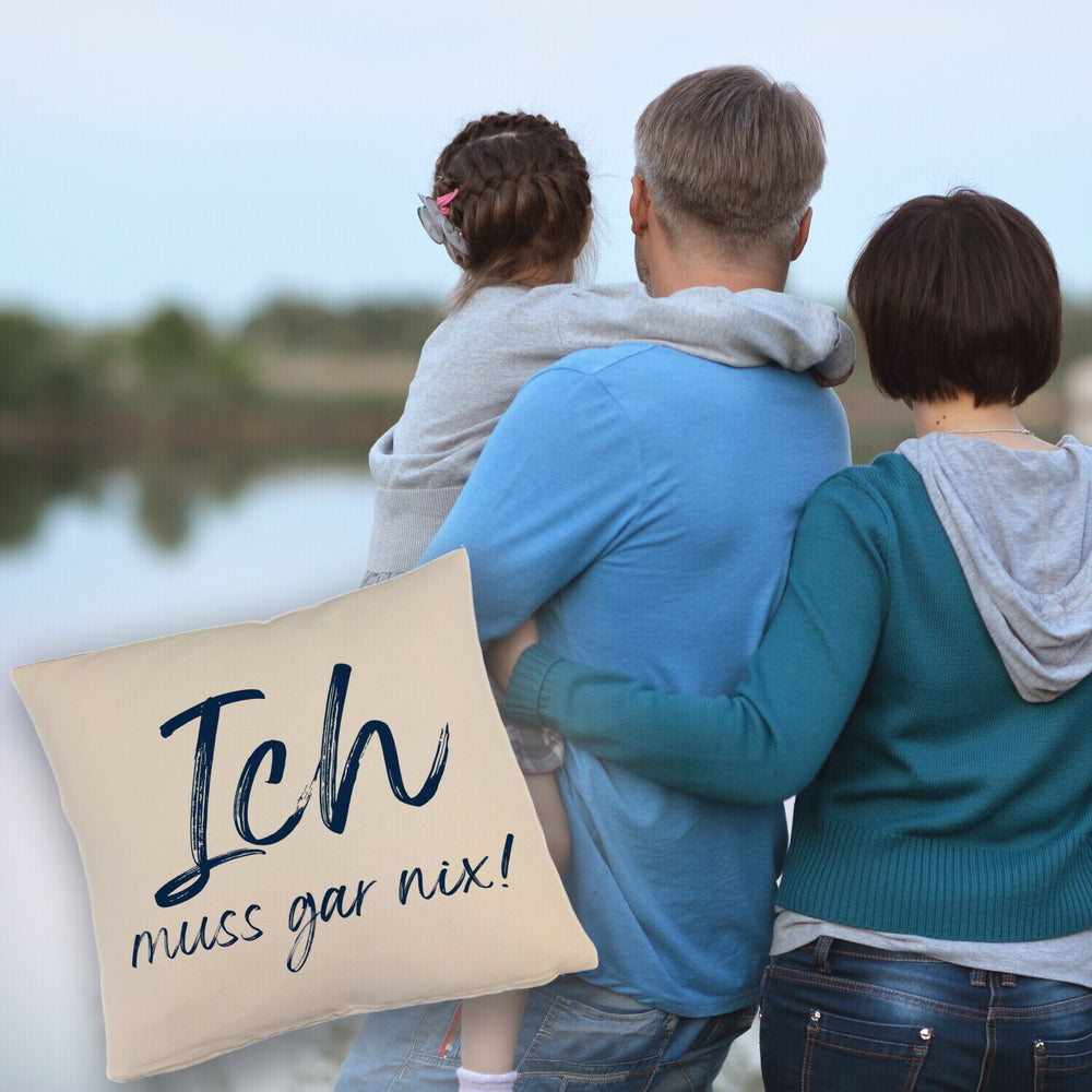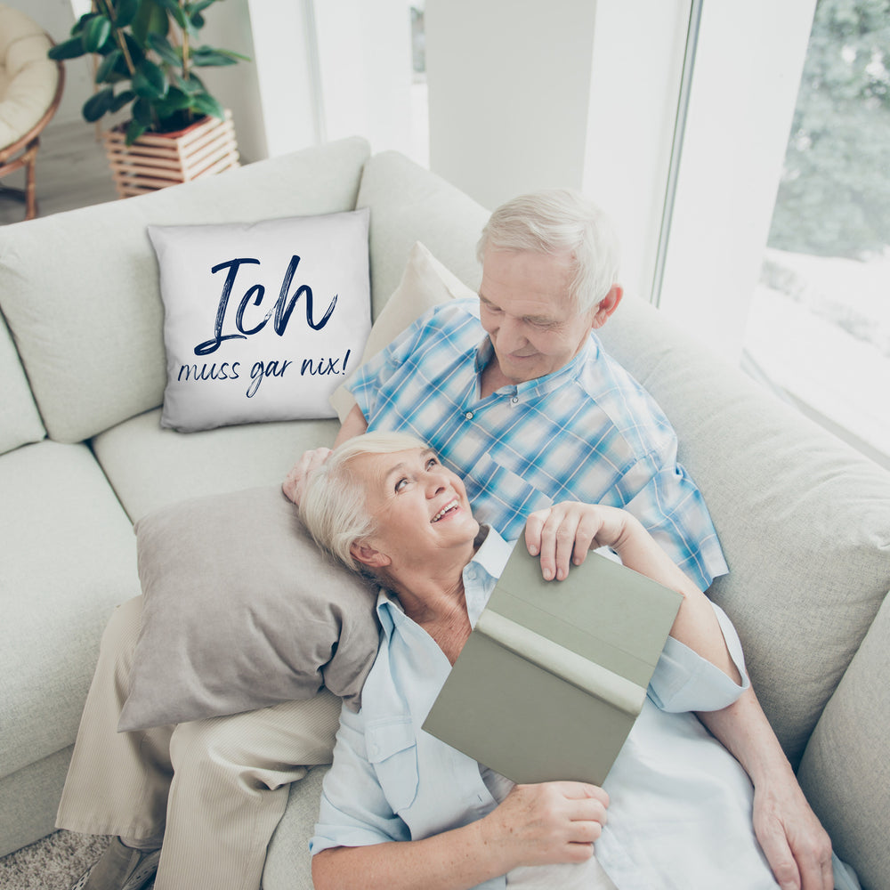 Ich muss gar nix Kissen mit Spruch - Standard ist auf Lager und wird versandt, sobald es wieder verfügbar ist
