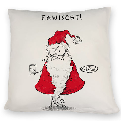 Weihnachtsmann am Naschen Kissen mit Spruch Erwischt