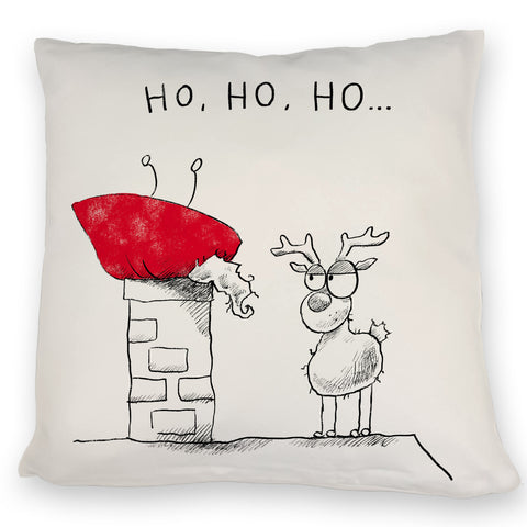 Weihnachtsmann im Kamin Kissen mit Spruch HO HO HO
