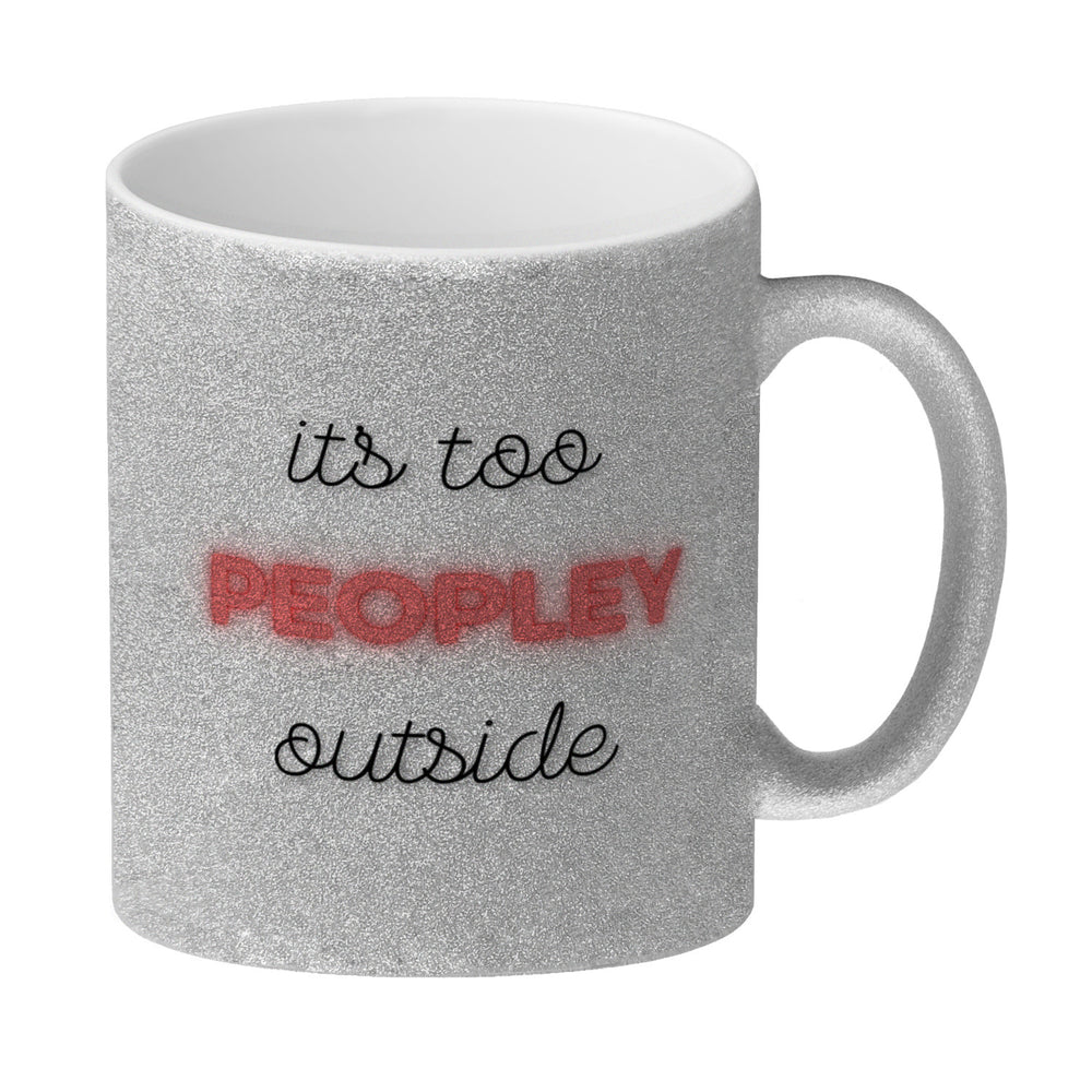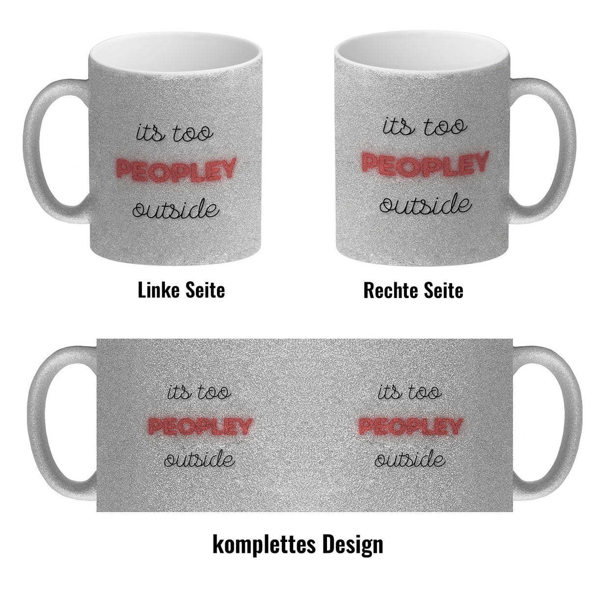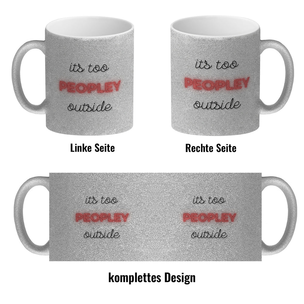 Ein schöner Kaffeebecher mit dem Spruch „It's too peopley outside“ ist ein ideales Geschenk für Misanthropen, Einsiedler, Nerds und Sprücheklopfer. Der Becher ist in verschiedenen Varianten erhältlich: weiße Standardtasse, farbigen Henkel und Innenseite, edle Glastasse oder die exklusive Silberedition mit Glitzereffekt. Alle Becher sind sorgfältig bedruckt in unserer Tassen-Manufaktur in Deutschland hergestellt. Der Becher hat ein neckisches Spruchmotiv auf beiden Seiten, so dass man den Spruch immer wieder lesen kann. Wenn du jemanden kennst der solche neckische Geschenke liebt, dann ist diese Tasse genau das Richtige! Mit dem It's too peopley outside Kaffeebecher zauberst du ein Lächeln ins Gesicht deines Freundes und schenkst ihm eine Erinnerung an die schönen Momente des Alleinseins.