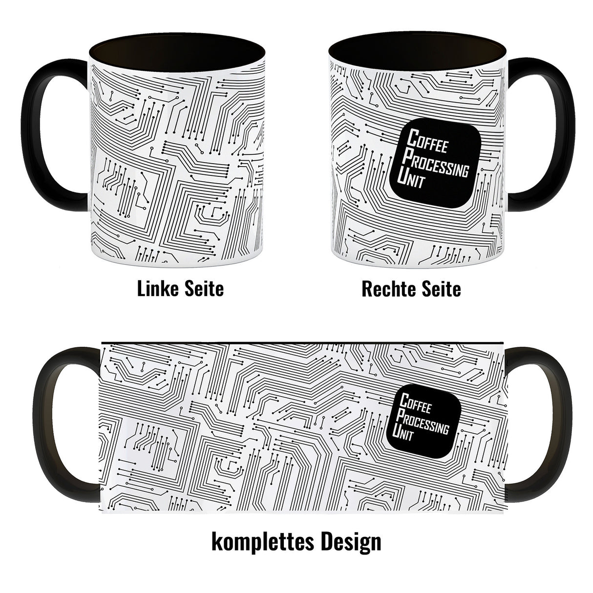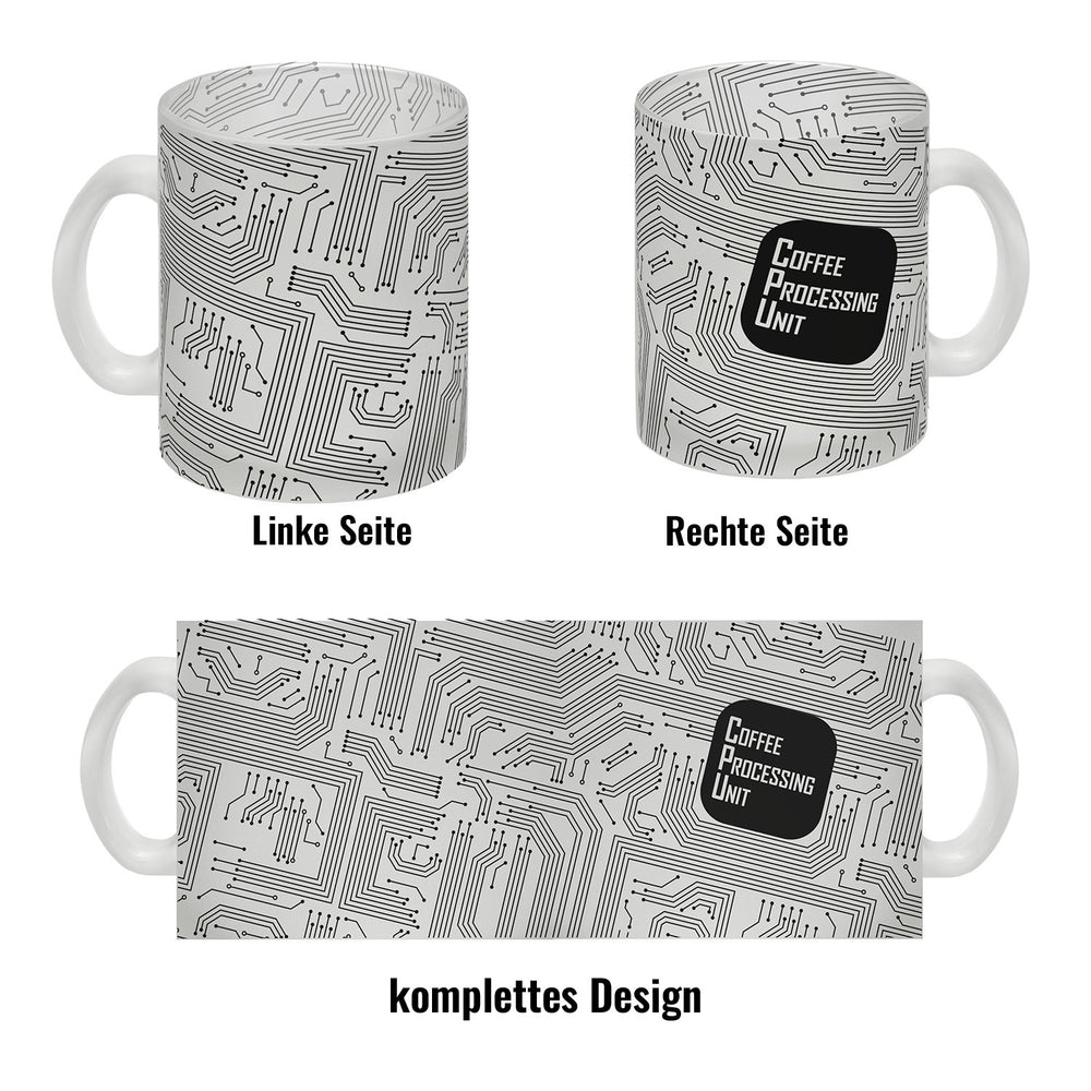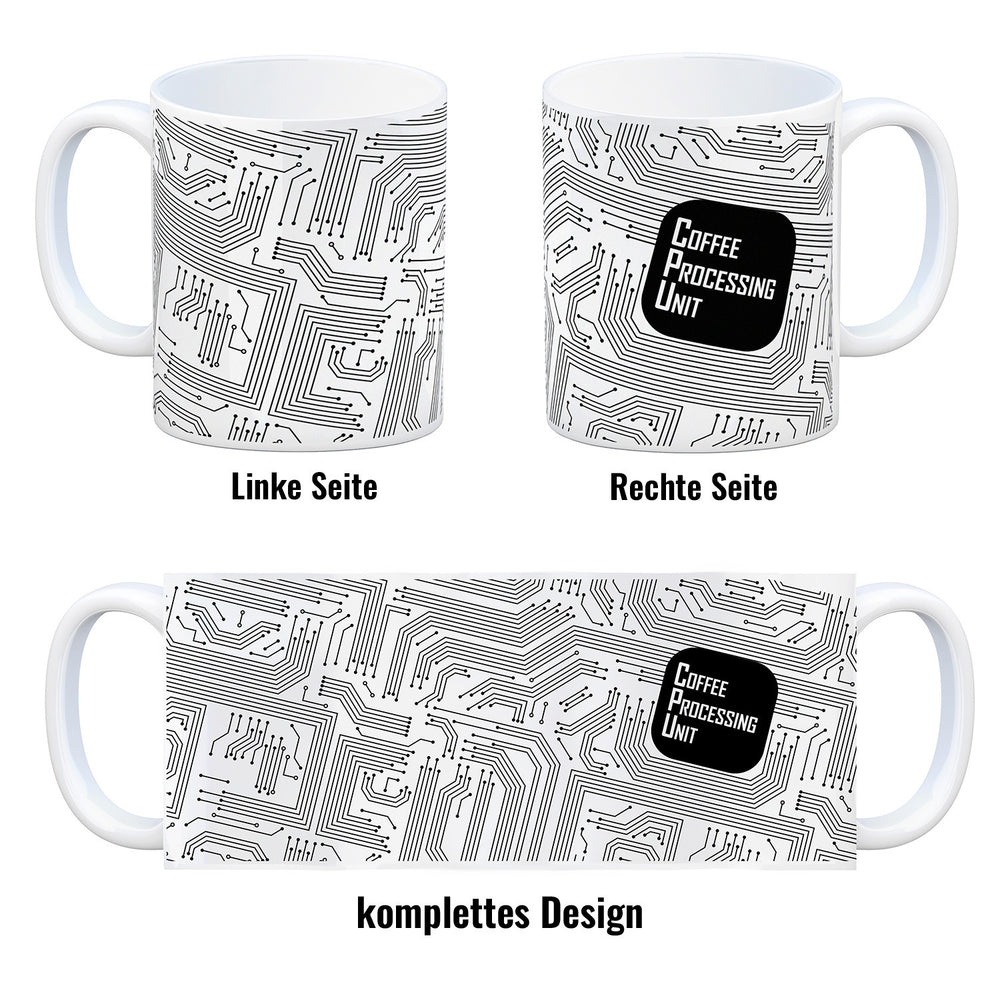• 1x Kaffeebecher CPU Motiv - Coffee Processing Unit mit Motherboard Motiv in der gewählten Ausführung