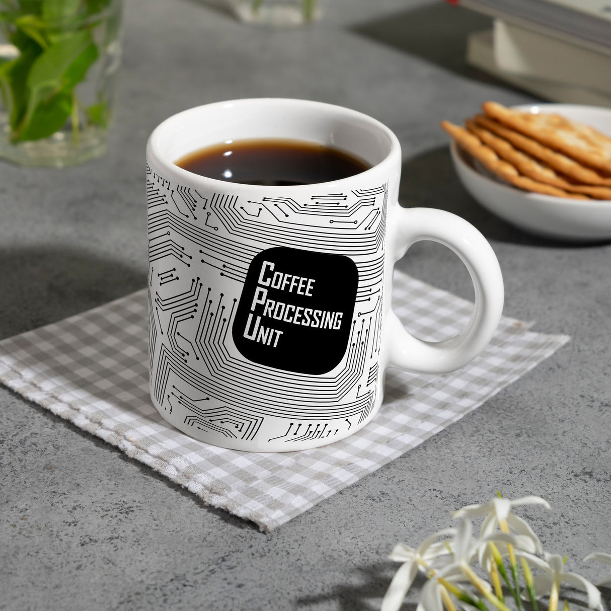 • Wenn die Arbeit am PC oder das Werkeln an technischen Geräten mal wieder zu viel wird, braucht es eine kleine Kaffeepause. Zum Glück hast du immer deine CPU, die coffee processing unit, dabei.
