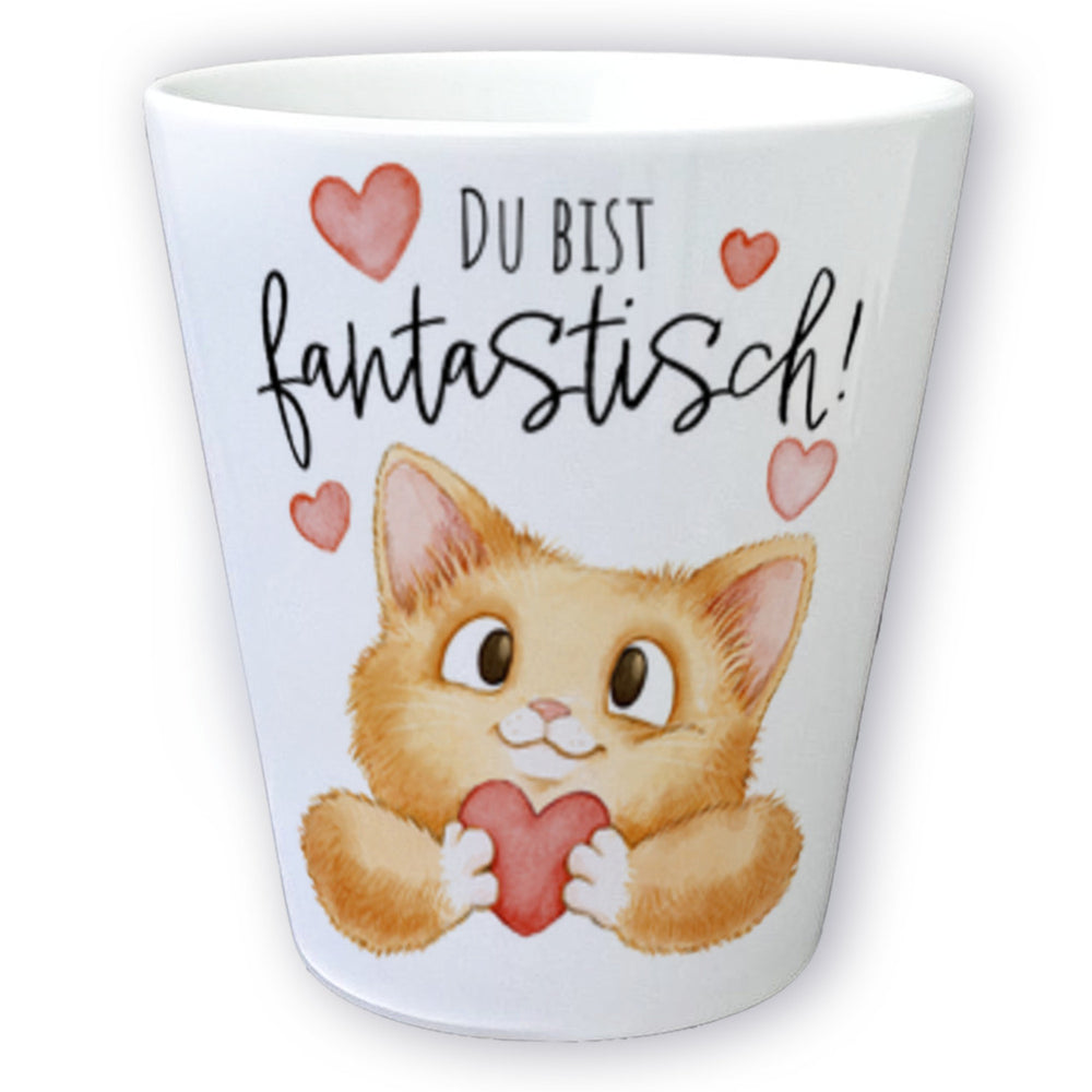 Katze Blumentopf mit Spruch Du bist fantastisch