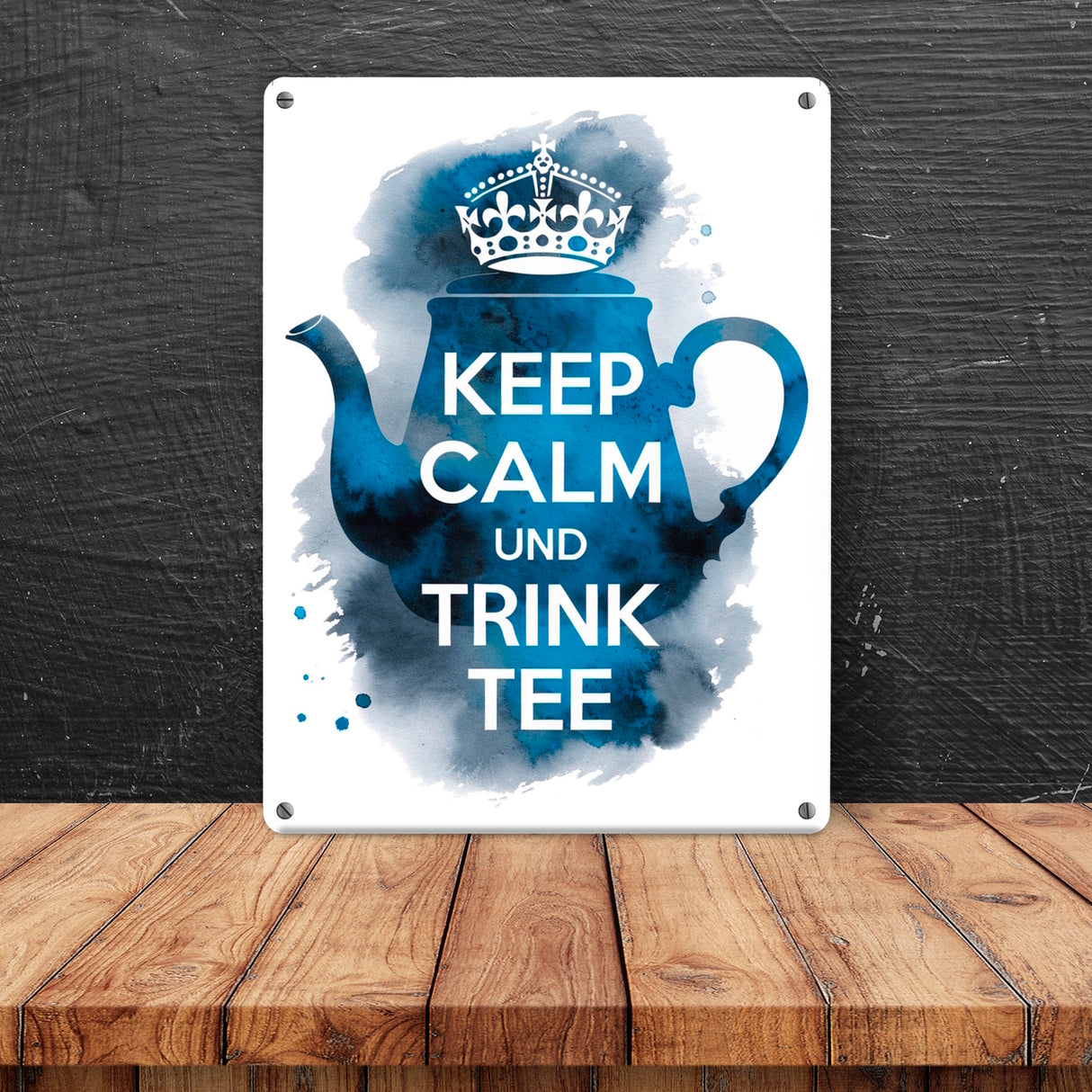 Keep calm und trink Tee Metallschild in 15x20 cm
