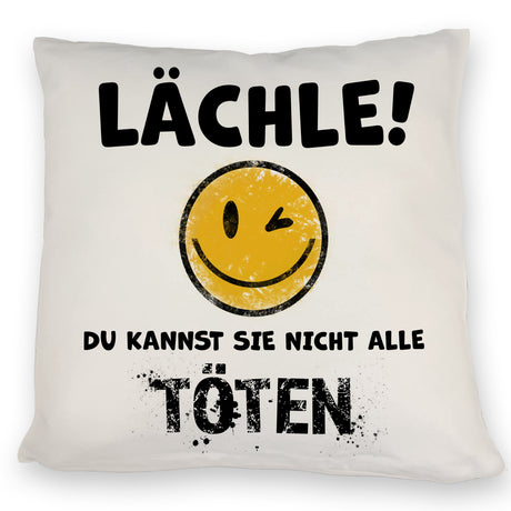 Emoticon Kissen mit Spruch - Lächle du kannst sie nicht alle töten