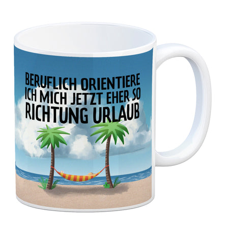 Beruflich orientiere ich mich jetzt eher so Richtung Urlaub Kaffeebecher