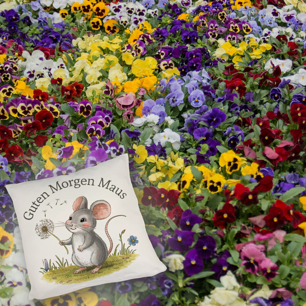 - Stellen Sie sich vor, Sie wachen auf und werden von einer Maus begrüßt, die einen Löwenzahn hält. Dieses "Guten Morgen Kissen" bringt Ihnen genau dieses Erlebnis! Es ist nicht nur ein Kissen, sondern ein fröhlicher Begleiter, der Ihren Morgen mit der gleichen Energie beginnt wie ein fröhlicher Tanz im Garten.