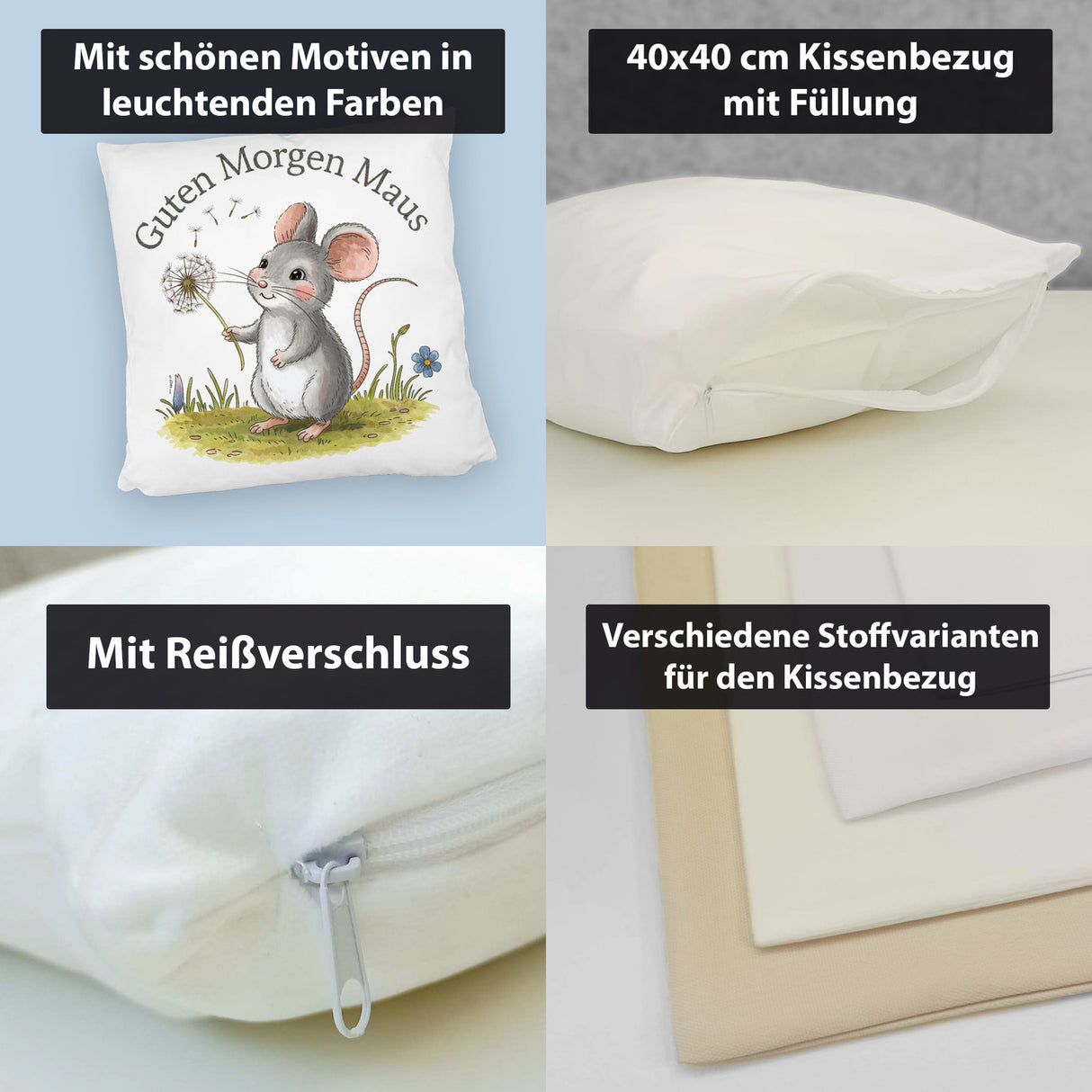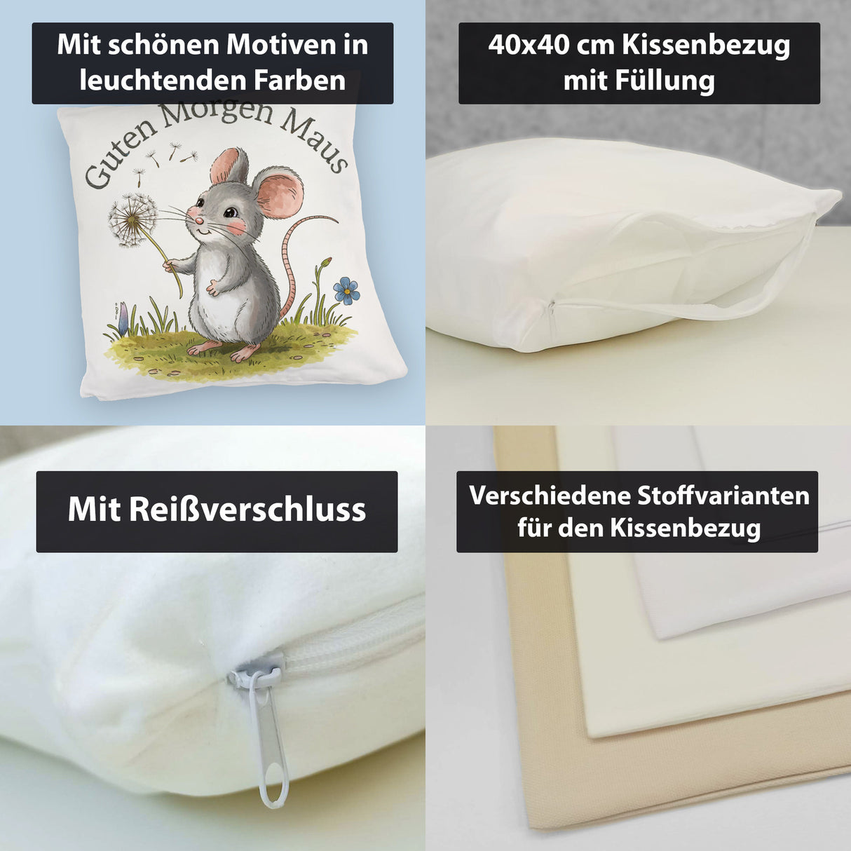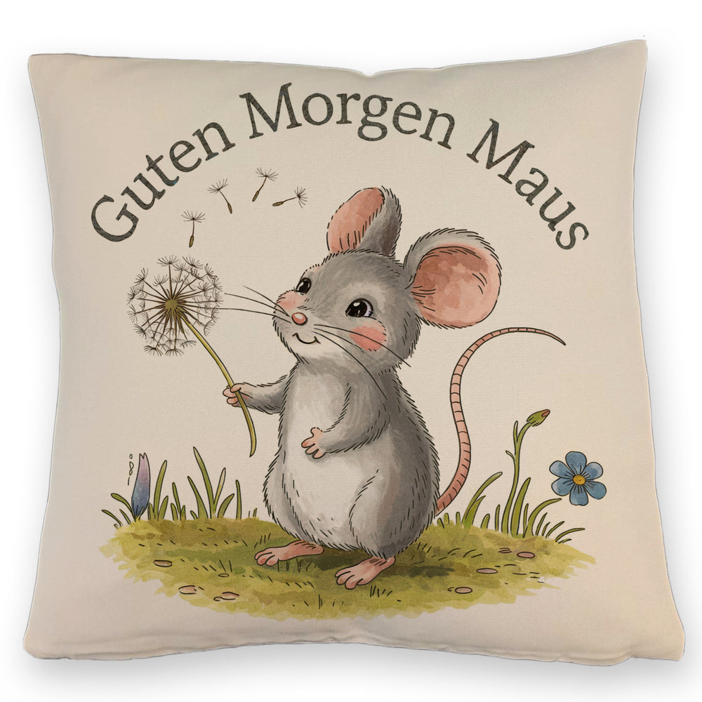 - 1x Maus mit Löwenzahn - Guten Morgen Kissen in der gewählten Ausführung