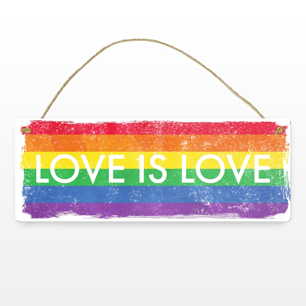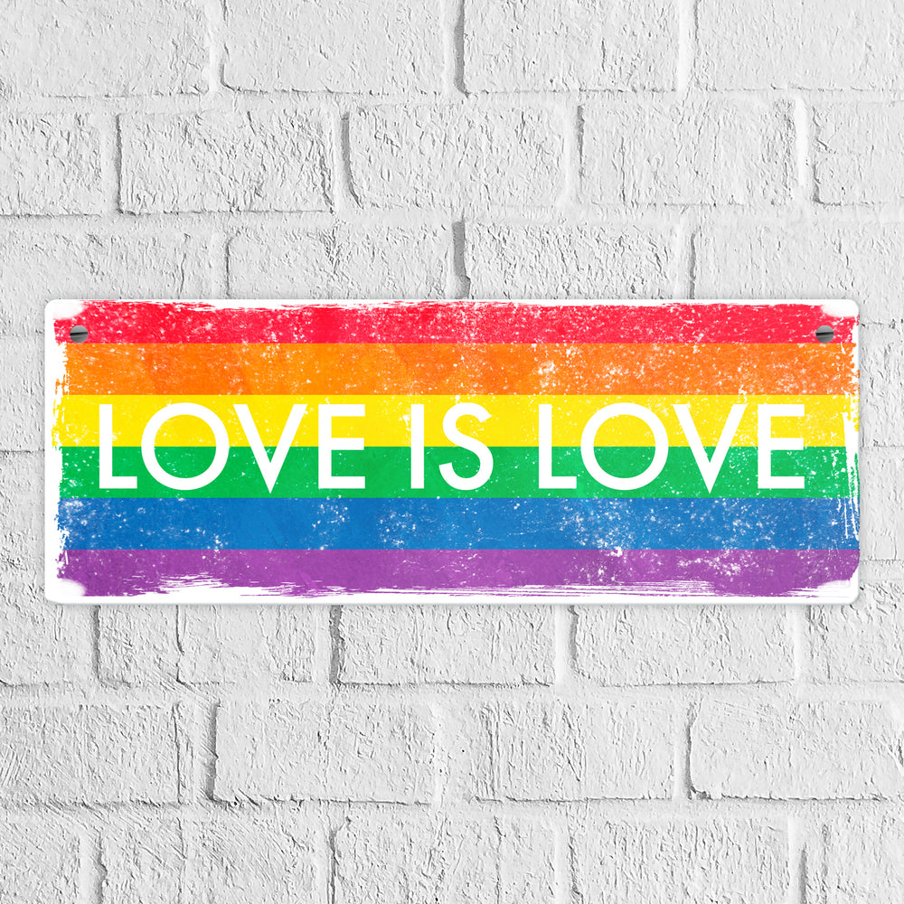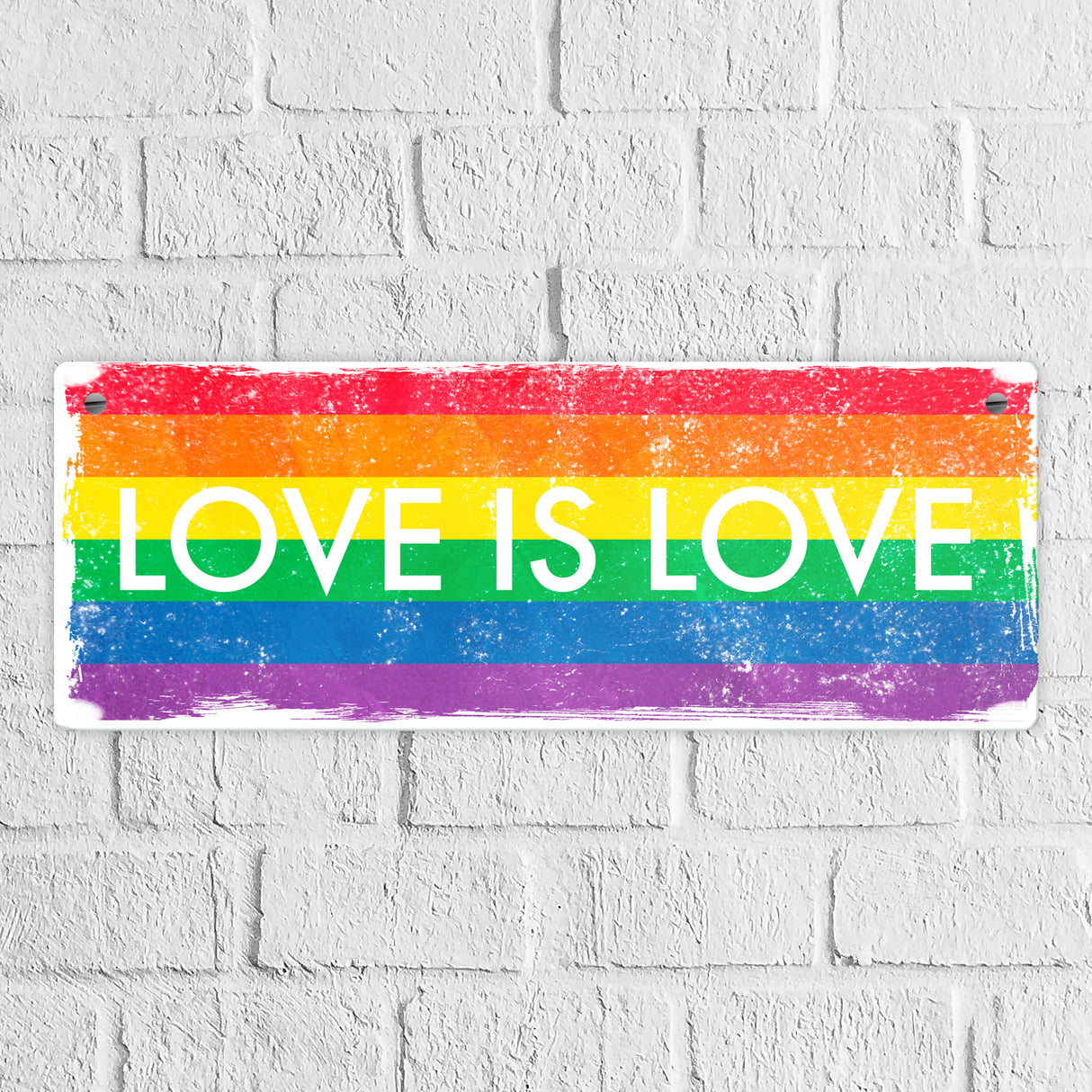 - Liebe ist Liebe, Love ist Love! Das ist einer der vielen Slogans der LGBTQ-Bewegung. Wenn du auch das Recht und die Freiheit aller unterstützt, dann zeige es ganz offen mit diesem tollen Metallschild an der Wand.