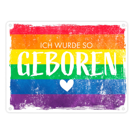 Ich wurde so geboren Metallschild mit Regenbogenflagge