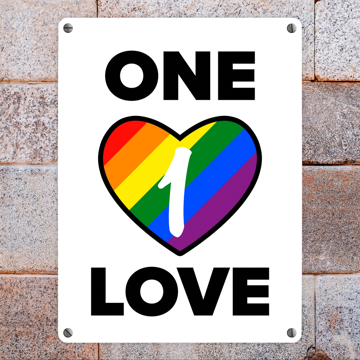 - 1x One Love Regenbogen Metallschild in der gewählten Größe