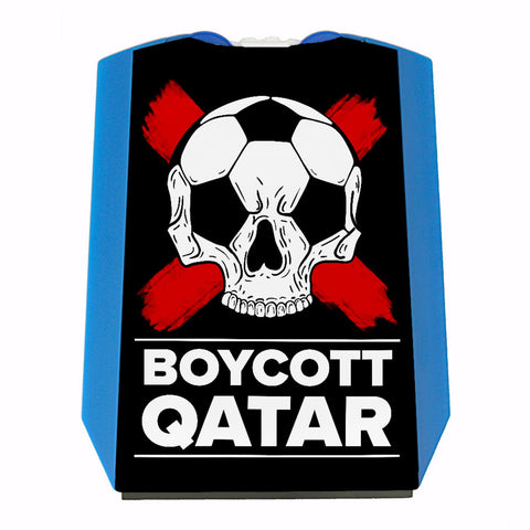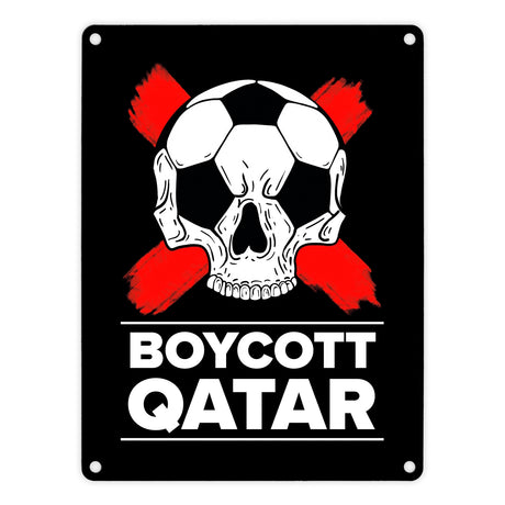 Boycott Qatar Metallschild mit Fußball-Totenkopf