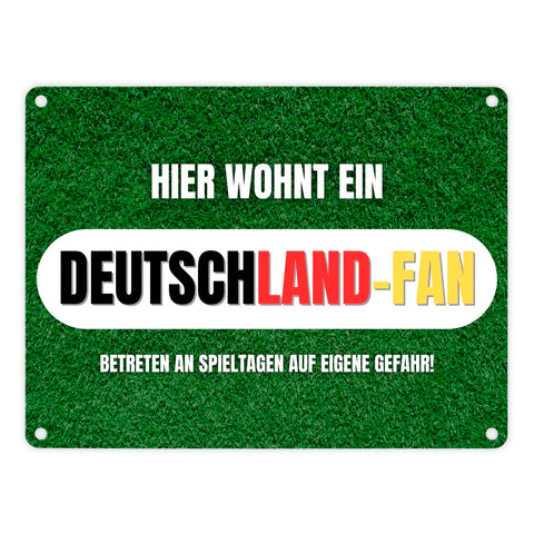 Hier wohnt ein Deutschland-Fan Metallschild in 15x20 cm mit Spruch Betreten auf eigene Gefahr