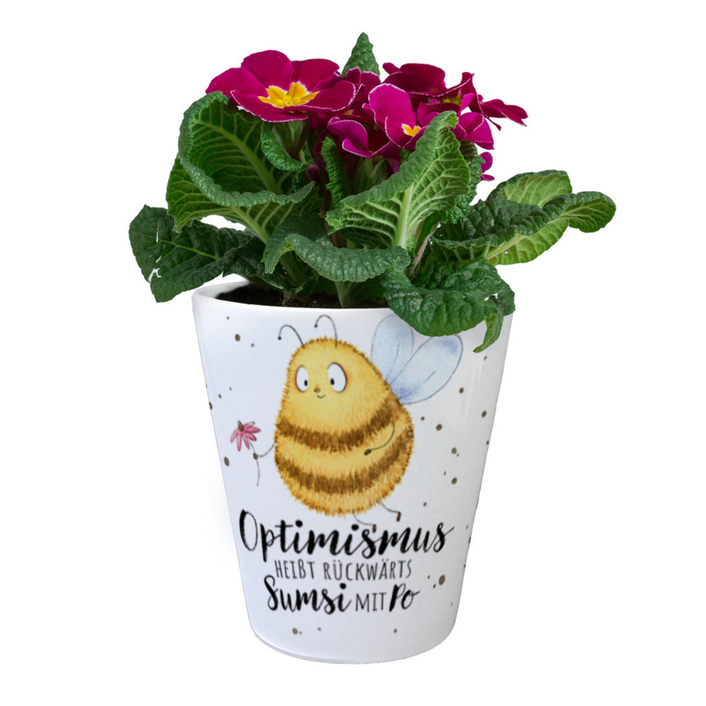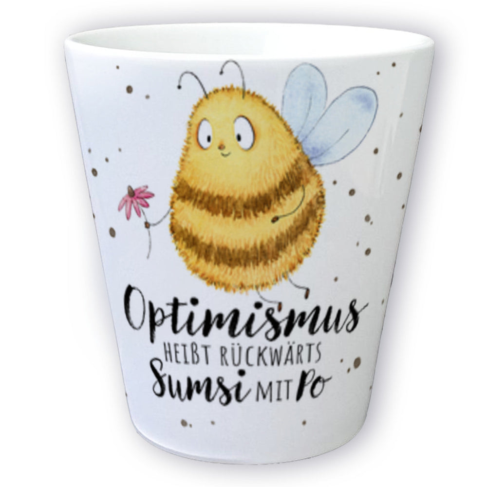 Pummel Biene Blumentopf mit Spruch Optimismus heißt rückwärts Sumsi mit Po