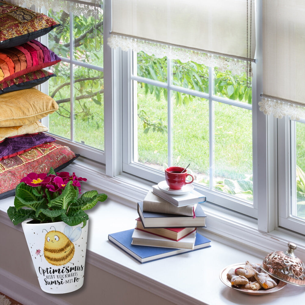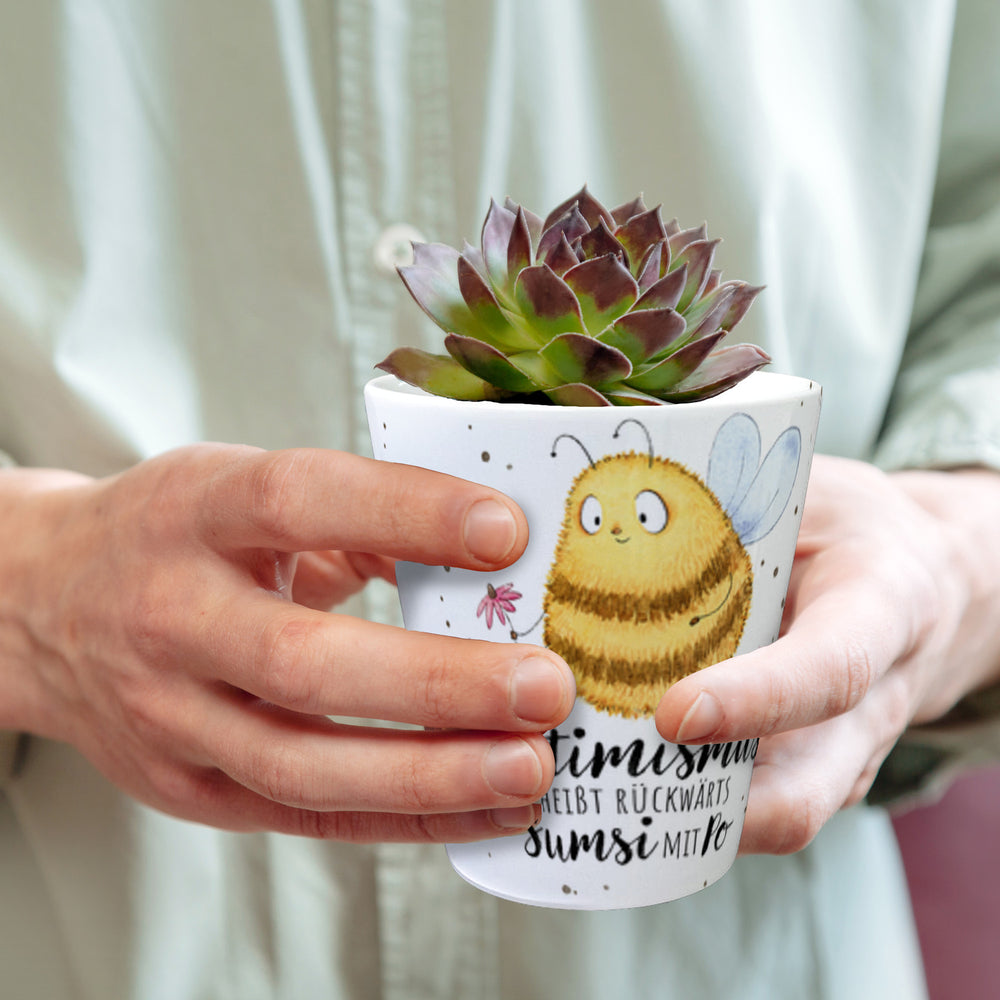 - Lieferumfang: 1x Pummel Biene Blumentopf mit Spruch Optimismus heißt rückwärts Sumsi mit Po