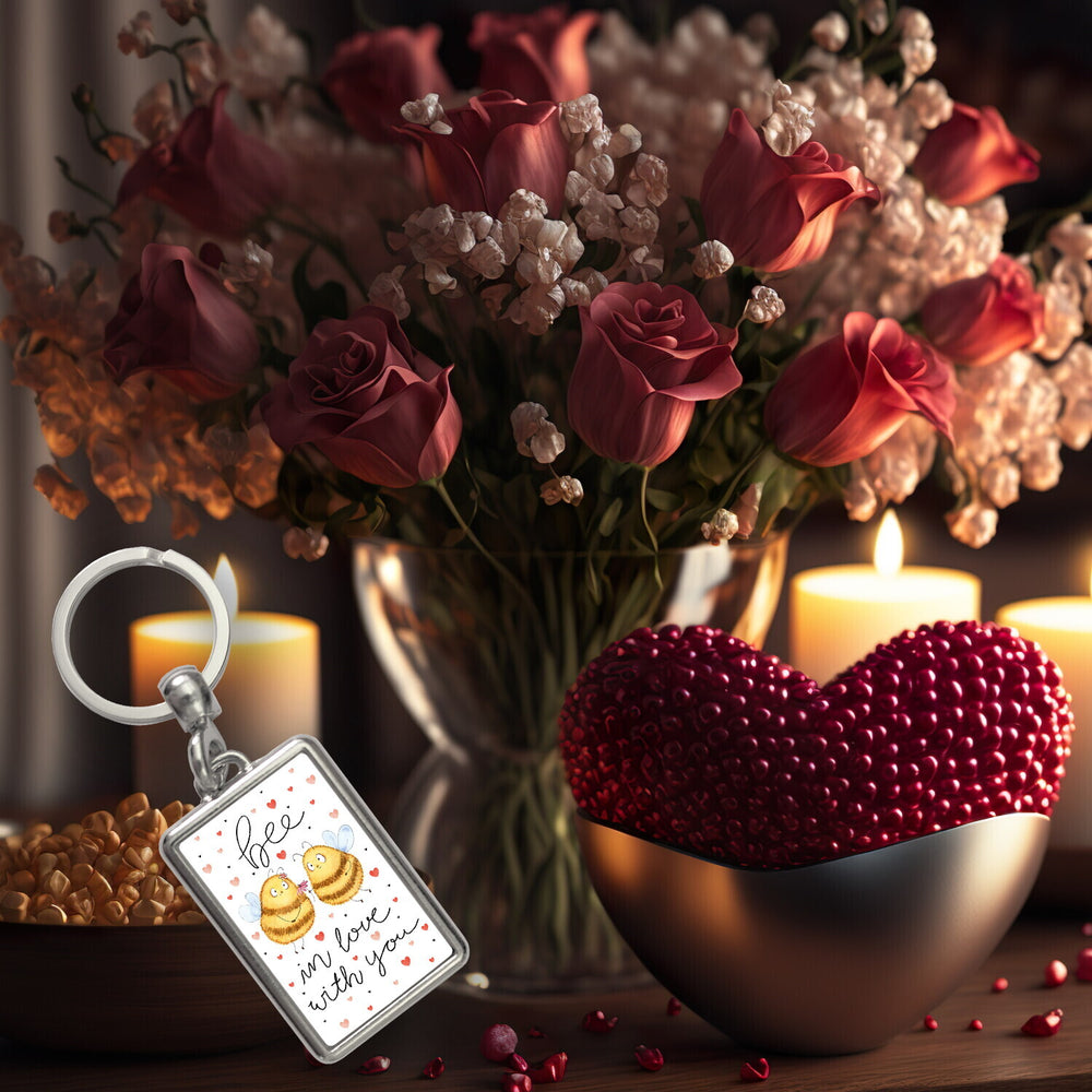 - 1x Pummel Biene Schlüsselanhänger mit Spruch Bee in love with you in der gewählten Ausführung