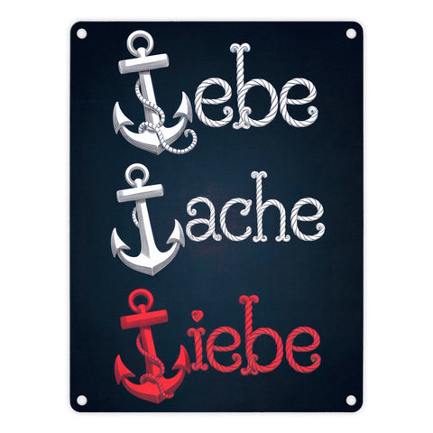 Weiße und rote Anker - Lebe Lache Liebe Metallschild in 15x20 cm