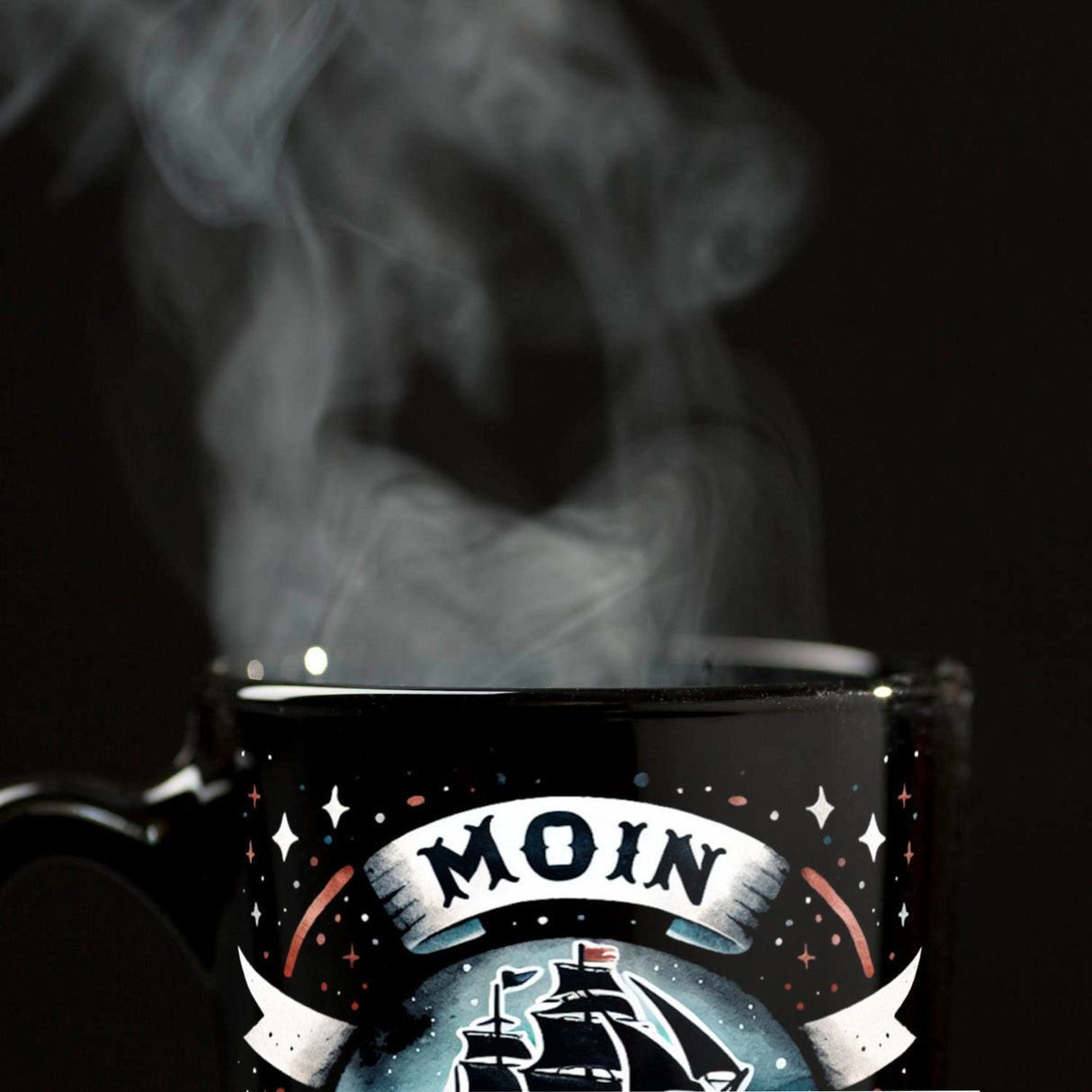 • Bereit für den perfekten Start in den Tag? Unsere Segelschiff Moin Moin Tasse in Schwarz bringt maritimes Feeling direkt zu dir nach Hause! Der lustige "Moin Moin" Schriftzug und das große Segelschiff sorgen für einen morgendlichen Frischekick.