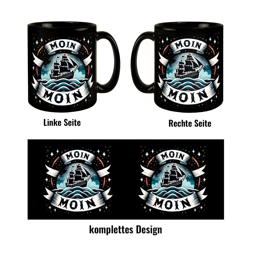 • Lieferumfang: 1x Segelschiff Moin Moin Tasse in Schwarz