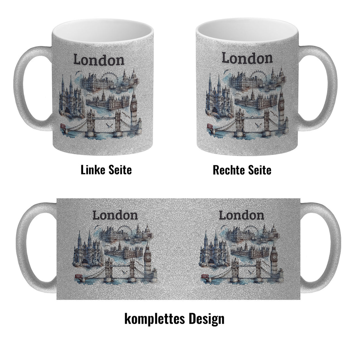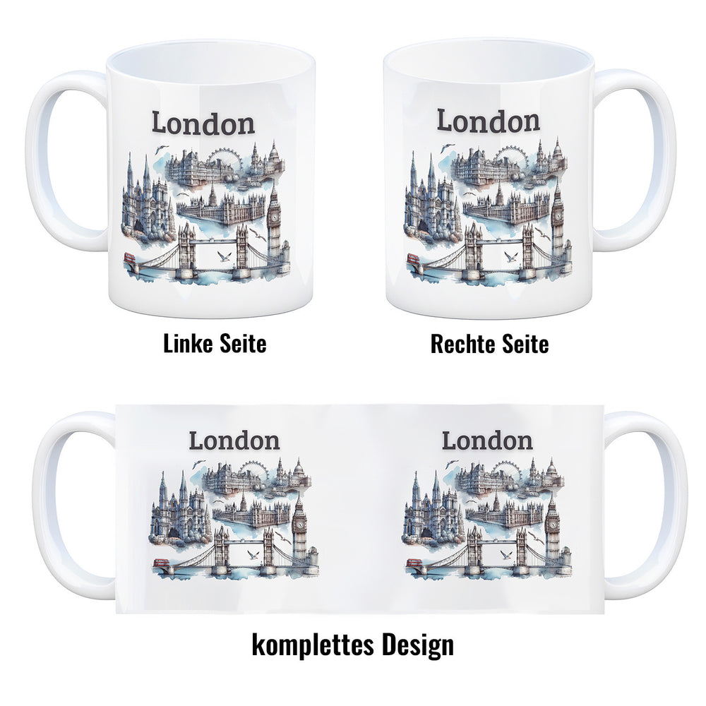 - 1x Skyline London Kaffeebecher mit Spruch London in der gewählten Ausführung