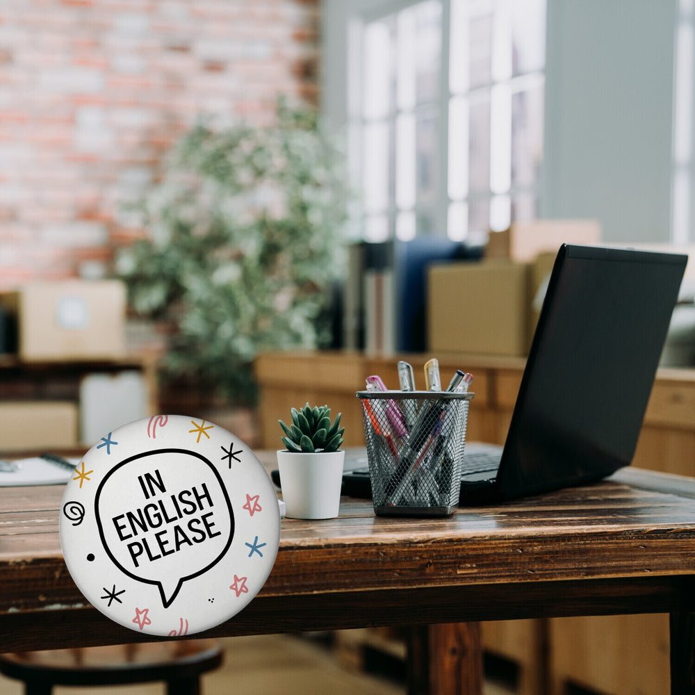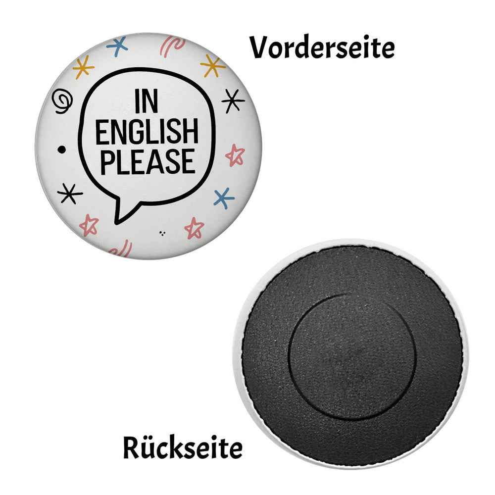 - 1x Sprechblase IN ENGLISH PLEASE Magnet in der gewählten Ausführung